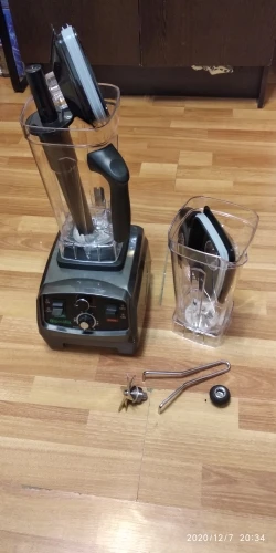 Блендер мощный. В инструкции указана пиковая мощность 2200 Вт. Объем стакана 2 литра. В комплекте есть специальная палка-мешалка-толкалка с ограничителем, который не позволяет ей опуститься до ножей. Ножи острые с надписью JAPAN. Инструкция на английском. При работе блендера я одной рукой прижимаю чашу вниз за ручку или за крышку, потому что по опыту знаю, что в подобных устройствах слабый контакт может привести к износу шестеренок. Купил в полной комплектации с запасным стаканом и деталями с промокодами и купонами из группы вконтакте GXSmart всего за 2583 руб. (в долларах $34.43). К покупке рекомендую. Советую покупать на распродаже со скидками с запасными деталями - наверняка пригодятся, но найти их потом будет проблематично.