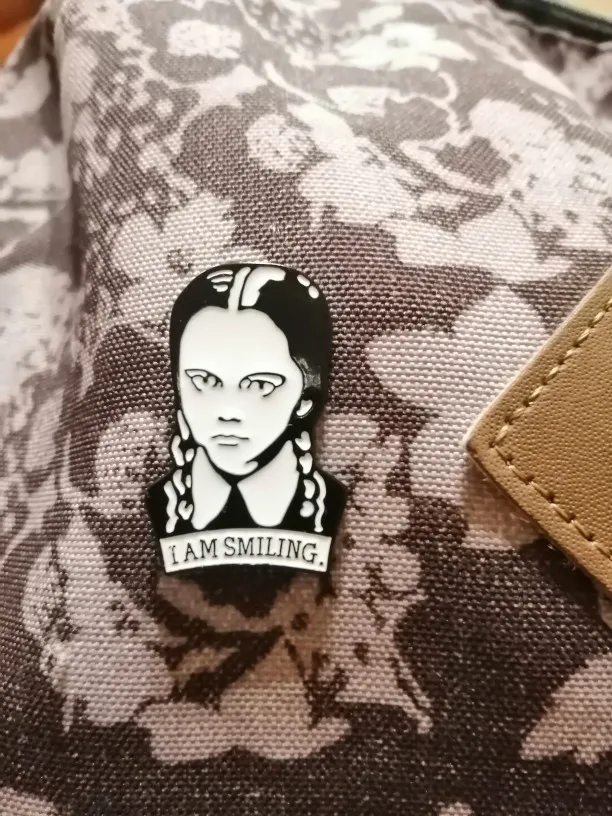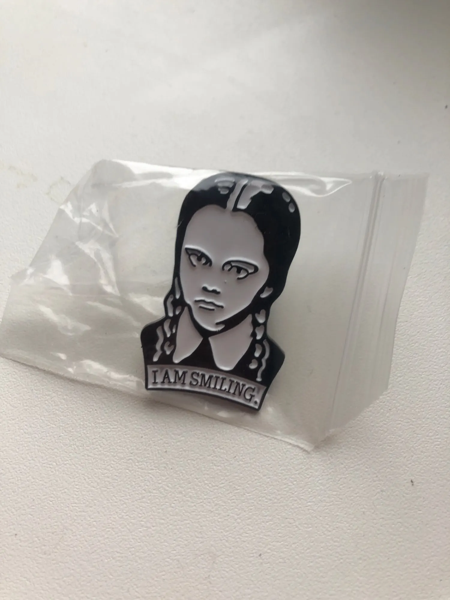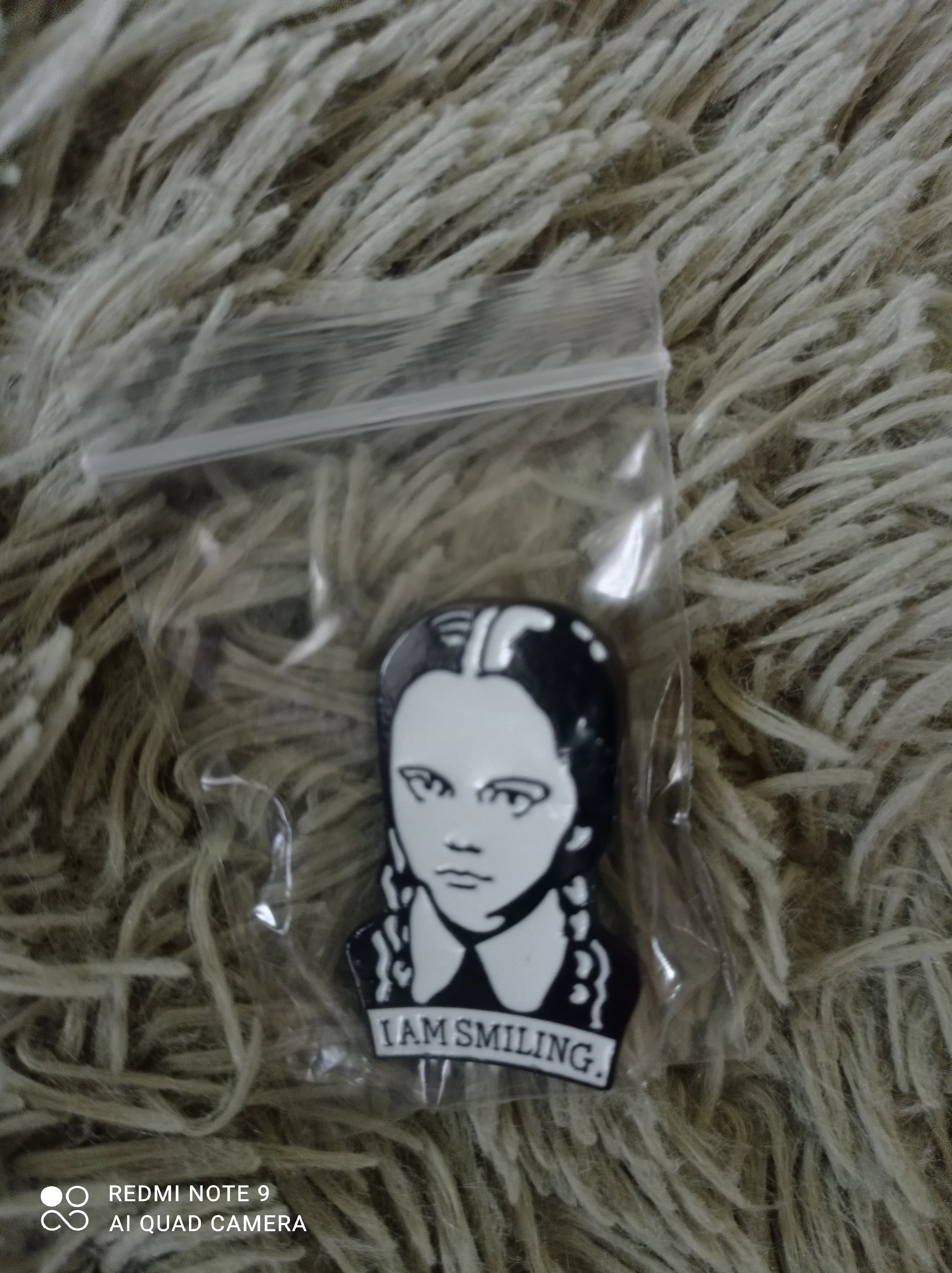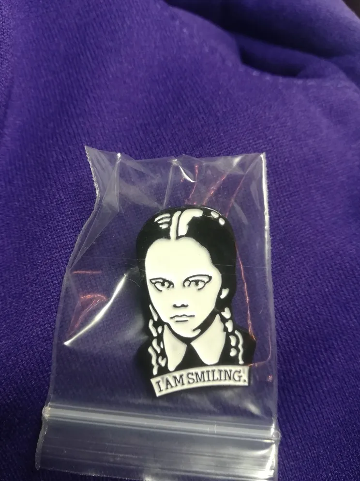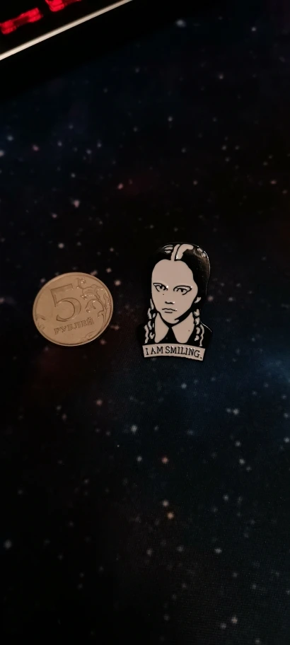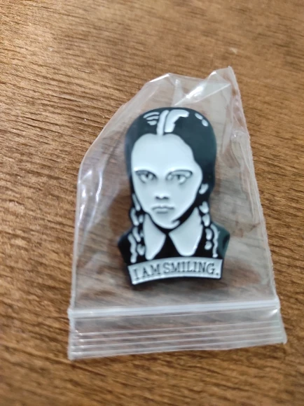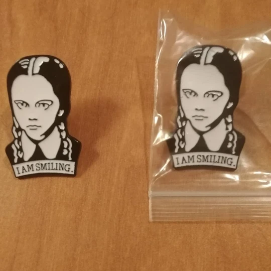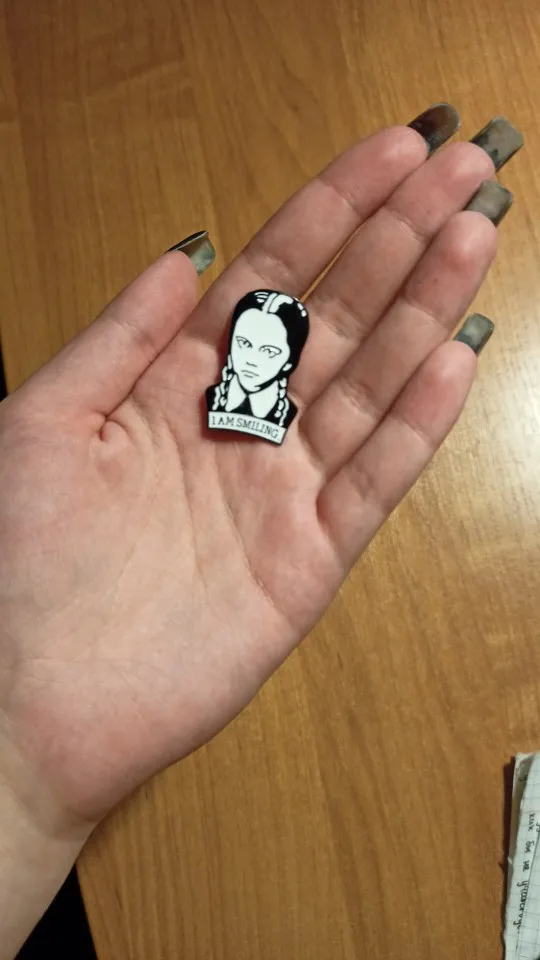 Прикольная брошь, выглядит качественно. Муж спросил, зачем мне Грета Тумберг пришлось объяснять, кто такая Венсдэй Аддамс