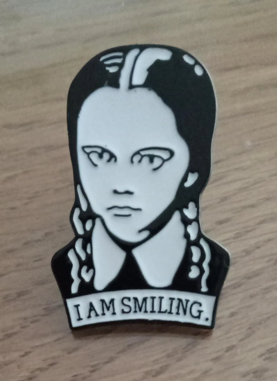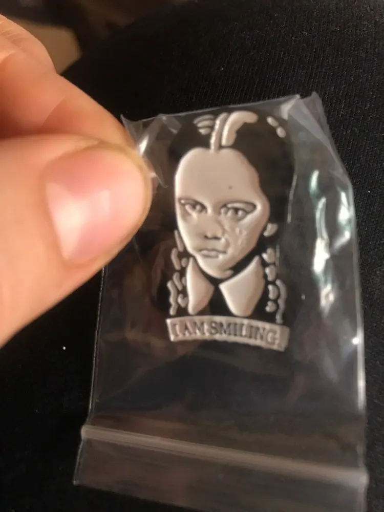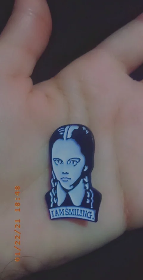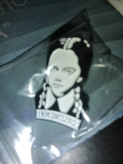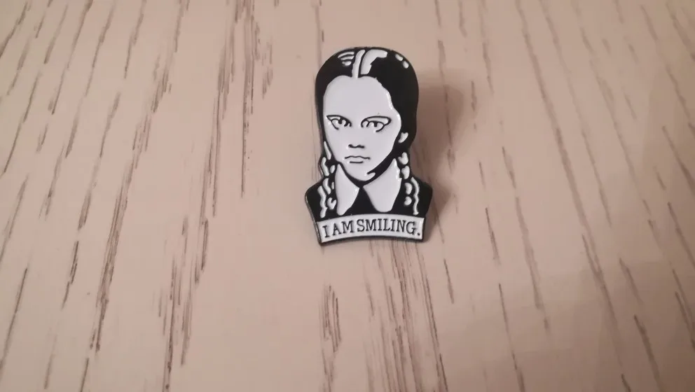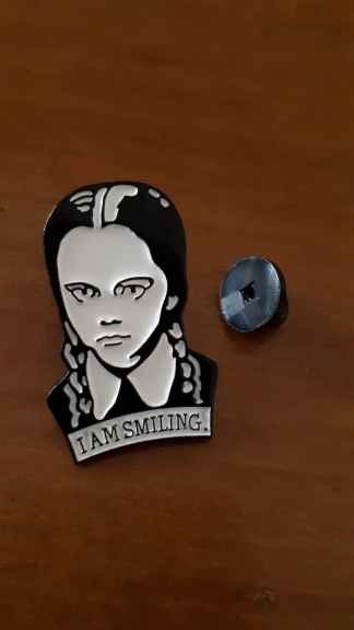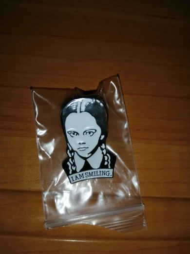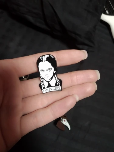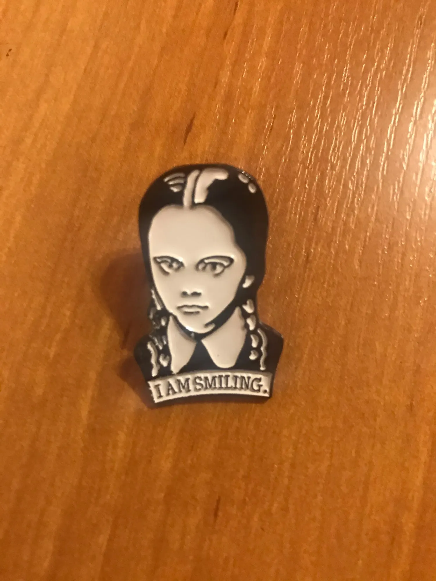 Прикольная брошь, выглядит качественно. Муж спросил, зачем мне Грета Тумберг пришлось объяснять, кто такая Венсдэй Аддамс
