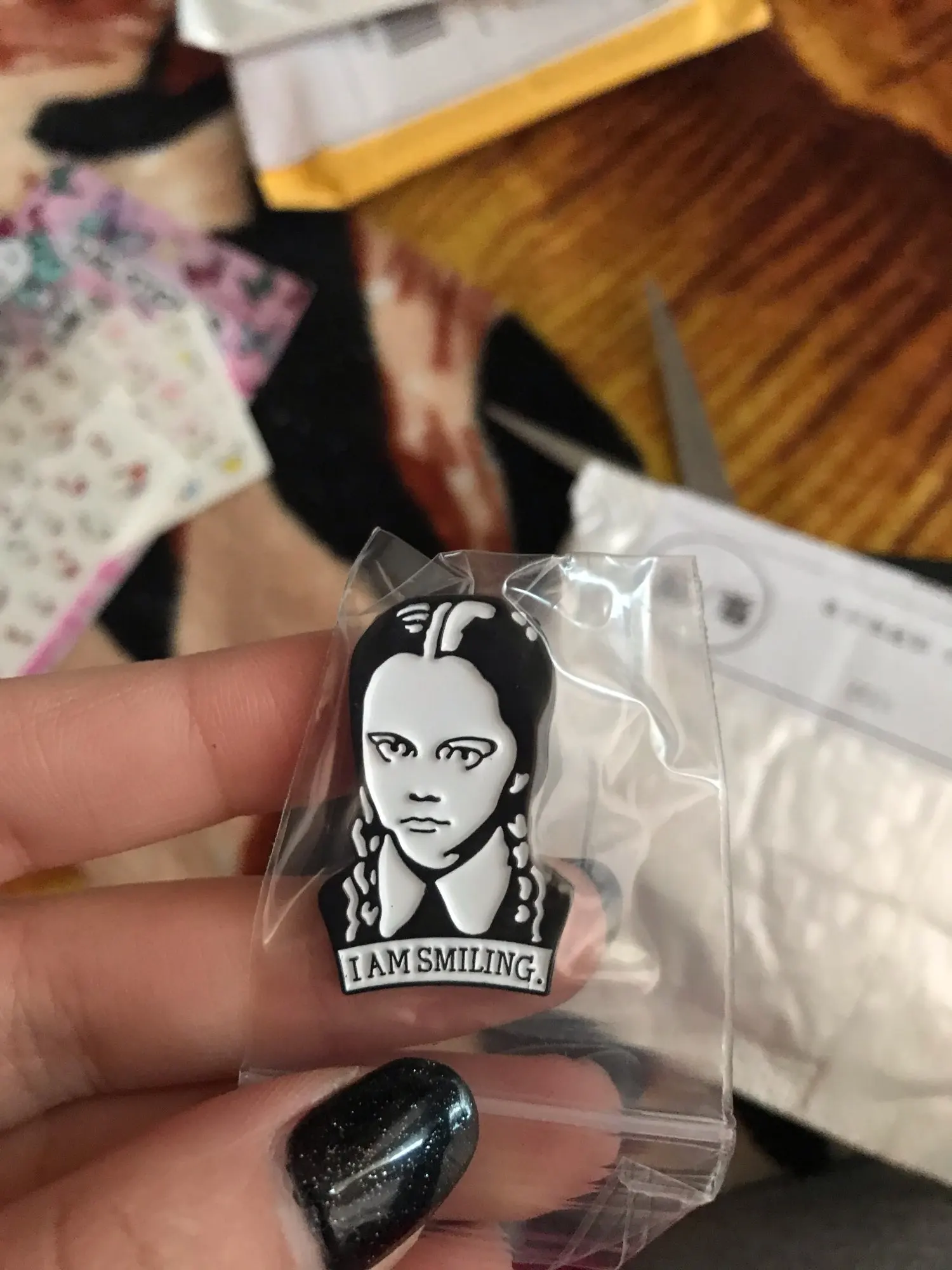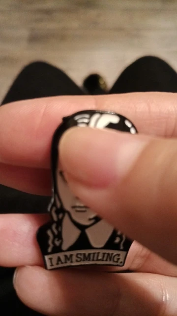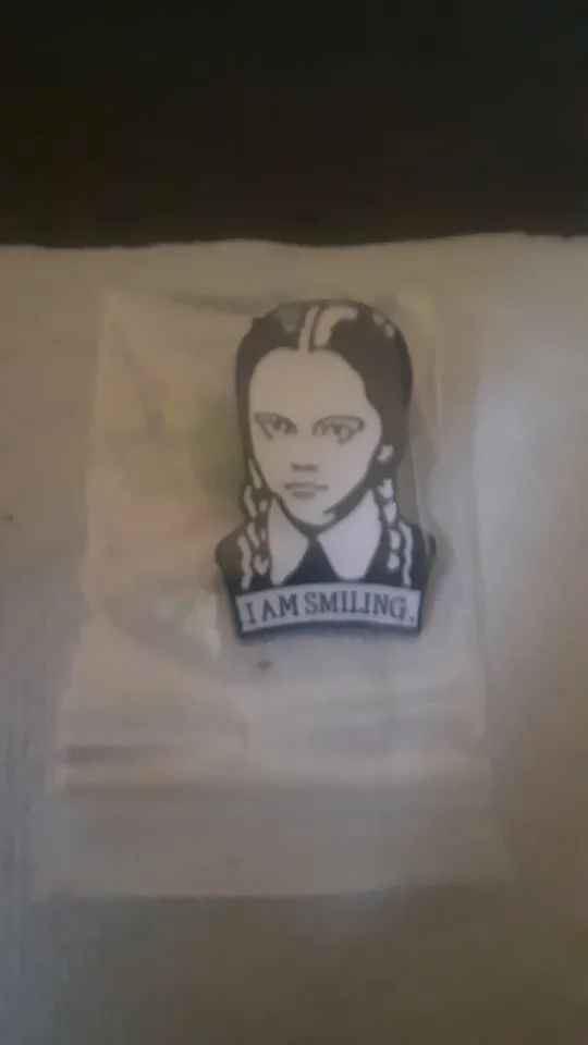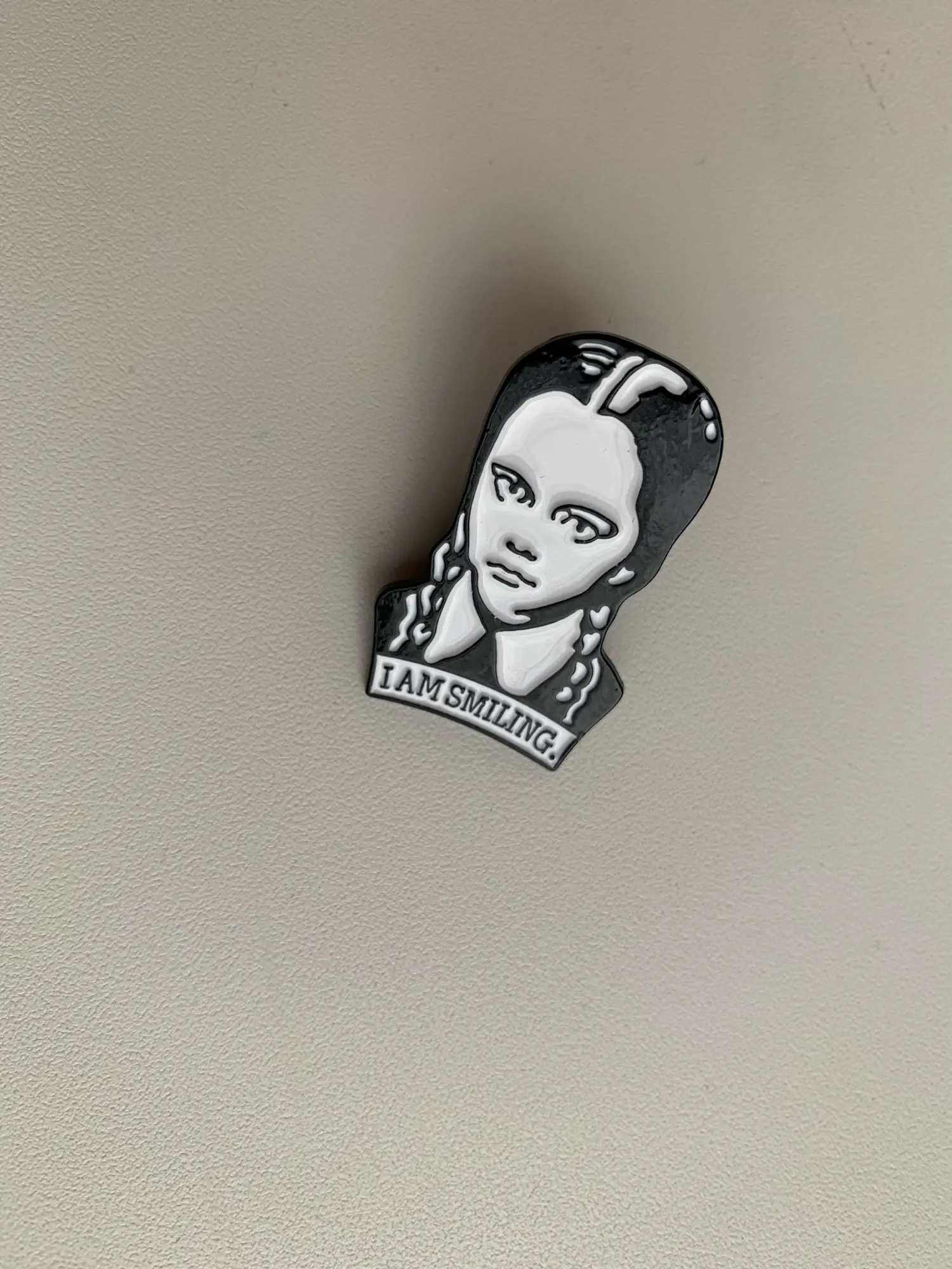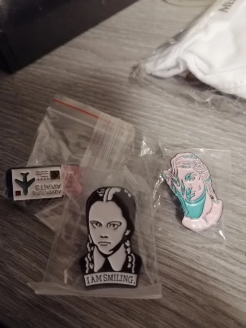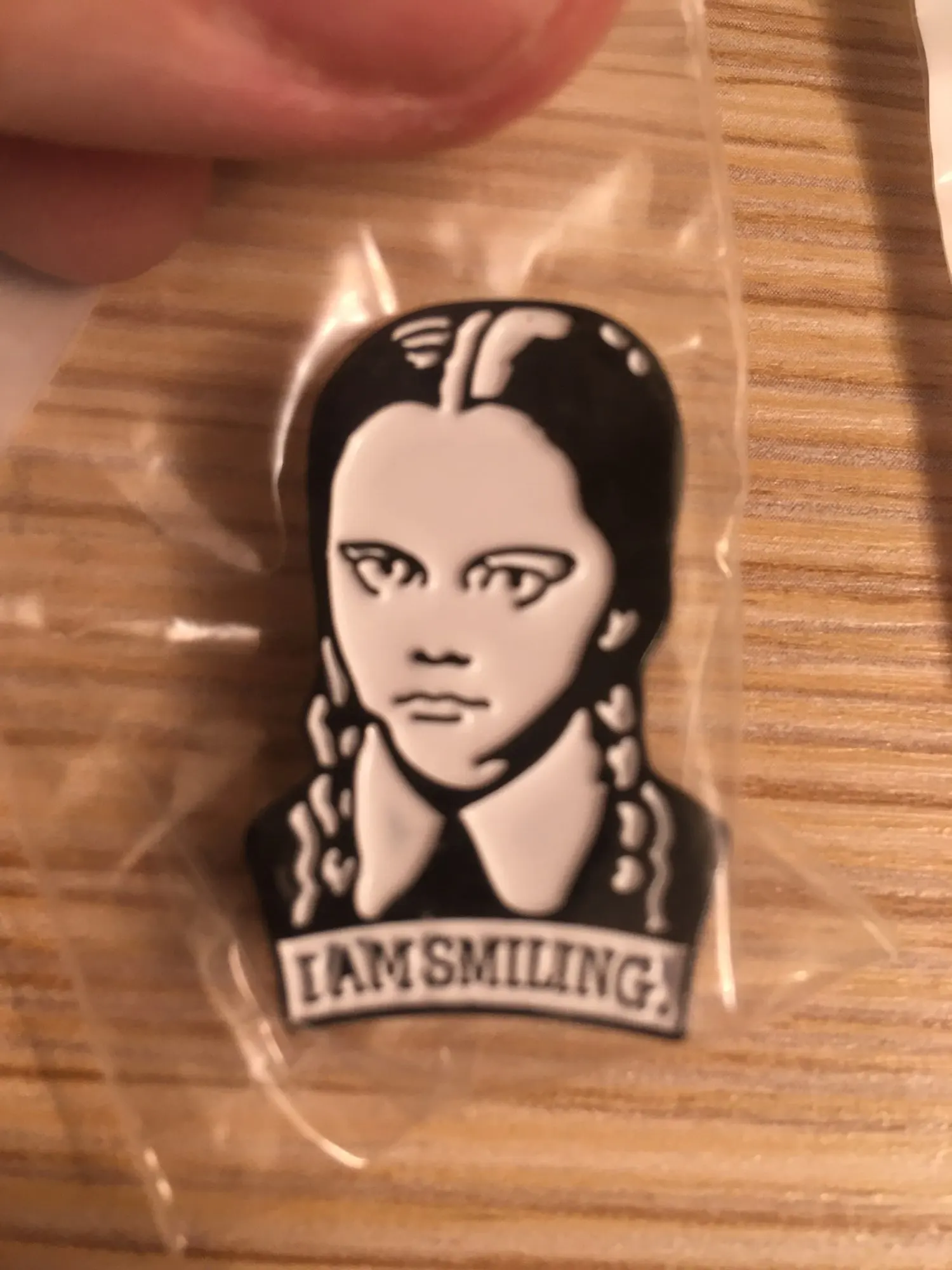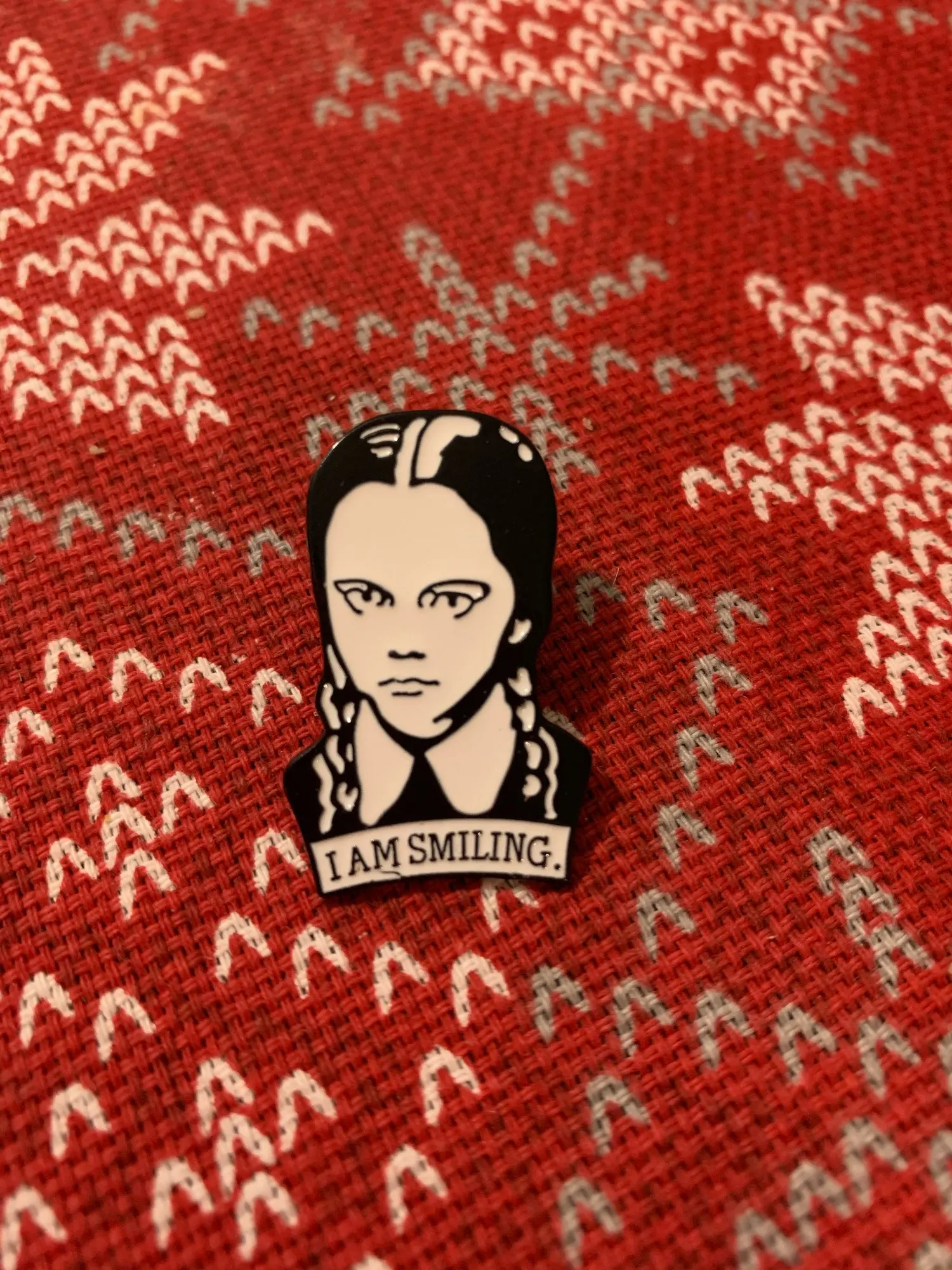 Прикольная брошь, выглядит качественно. Муж спросил, зачем мне Грета Тумберг пришлось объяснять, кто такая Венсдэй Аддамс