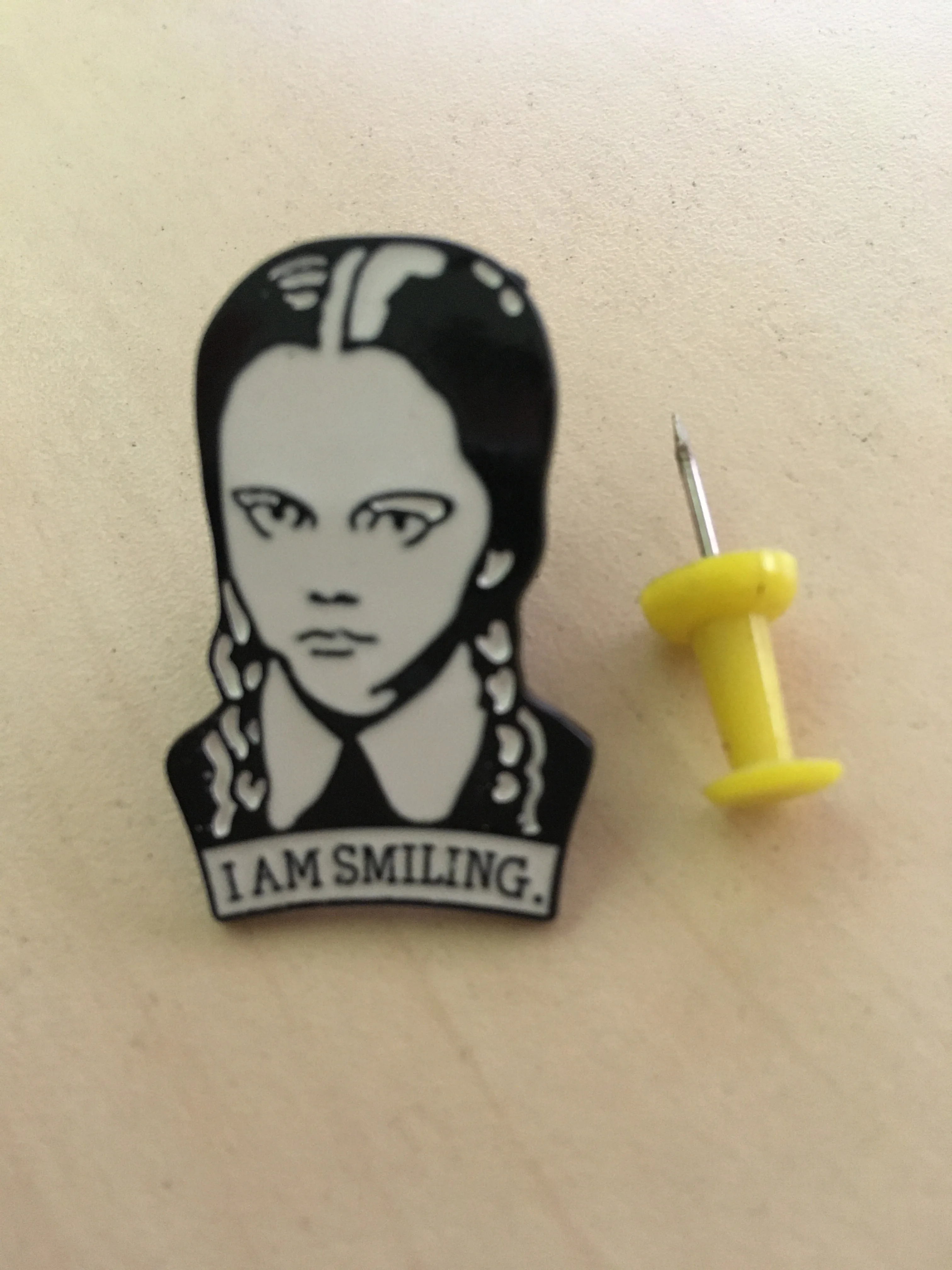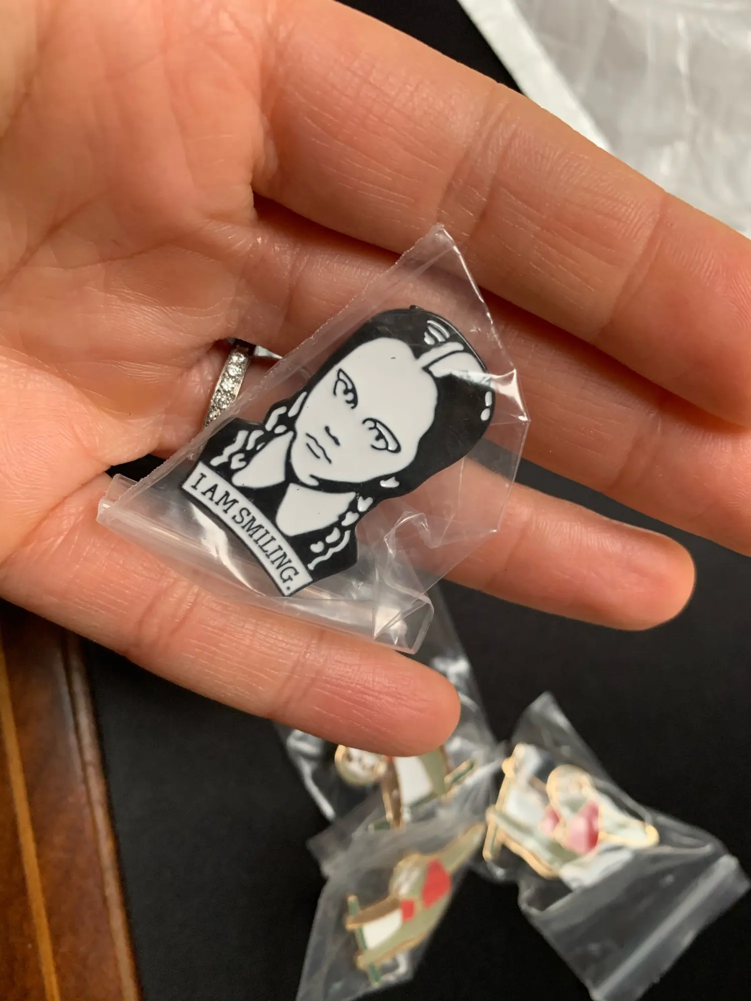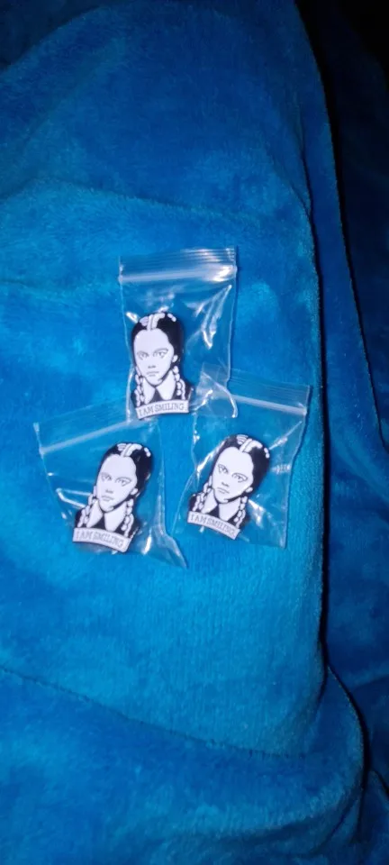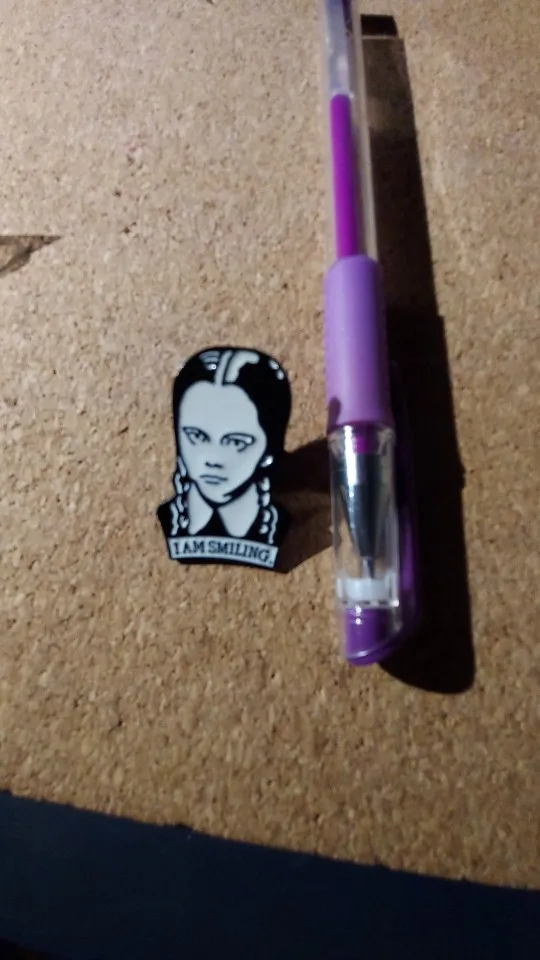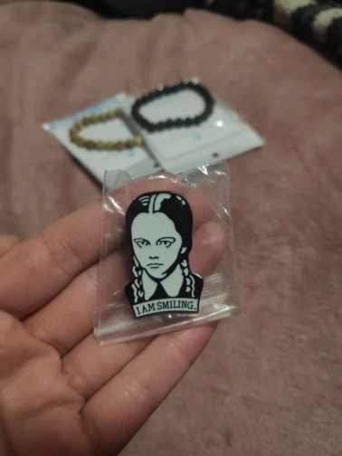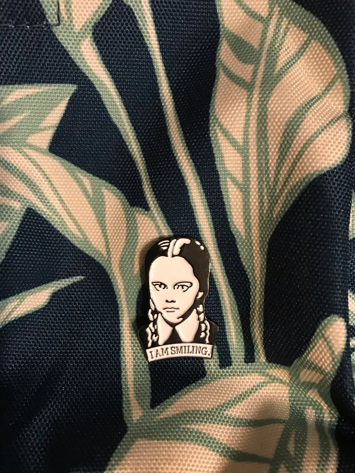 Прикольная брошь, выглядит качественно. Муж спросил, зачем мне Грета Тумберг пришлось объяснять, кто такая Венсдэй Аддамс
