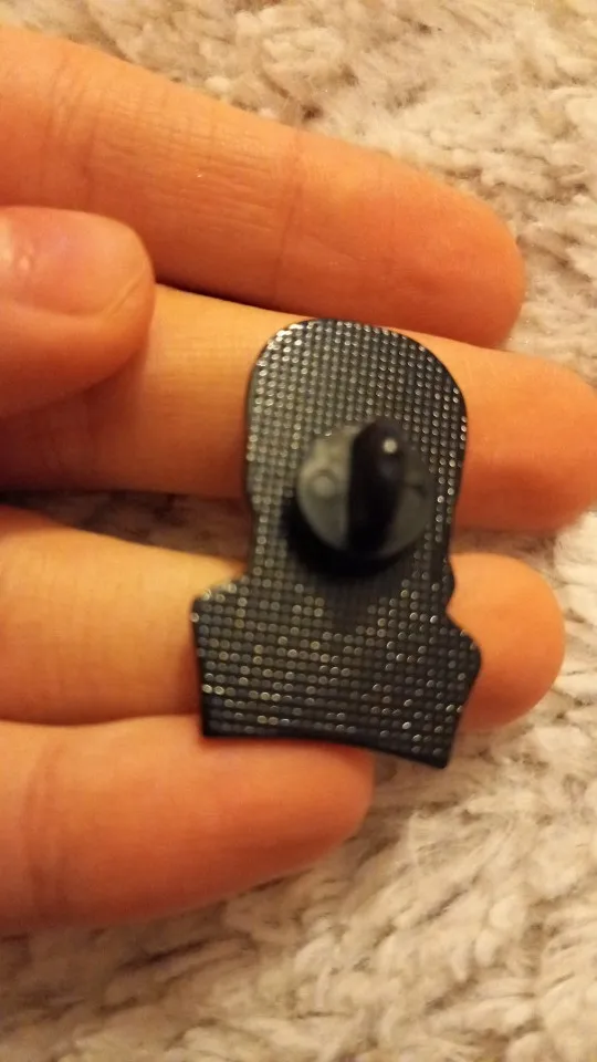 Значок прибыл быстро. Гладкий, без шероховатостей (за исключением самого рельефа, как и должно быть), дефектов нет. ^-^ Держится достаточно крепко, очень тугая застёжка. Я её сама едва сняла, когда нужно было бросить футболку в стирку, так что сама она точно не упадёт.:D Очень довольна товаром!