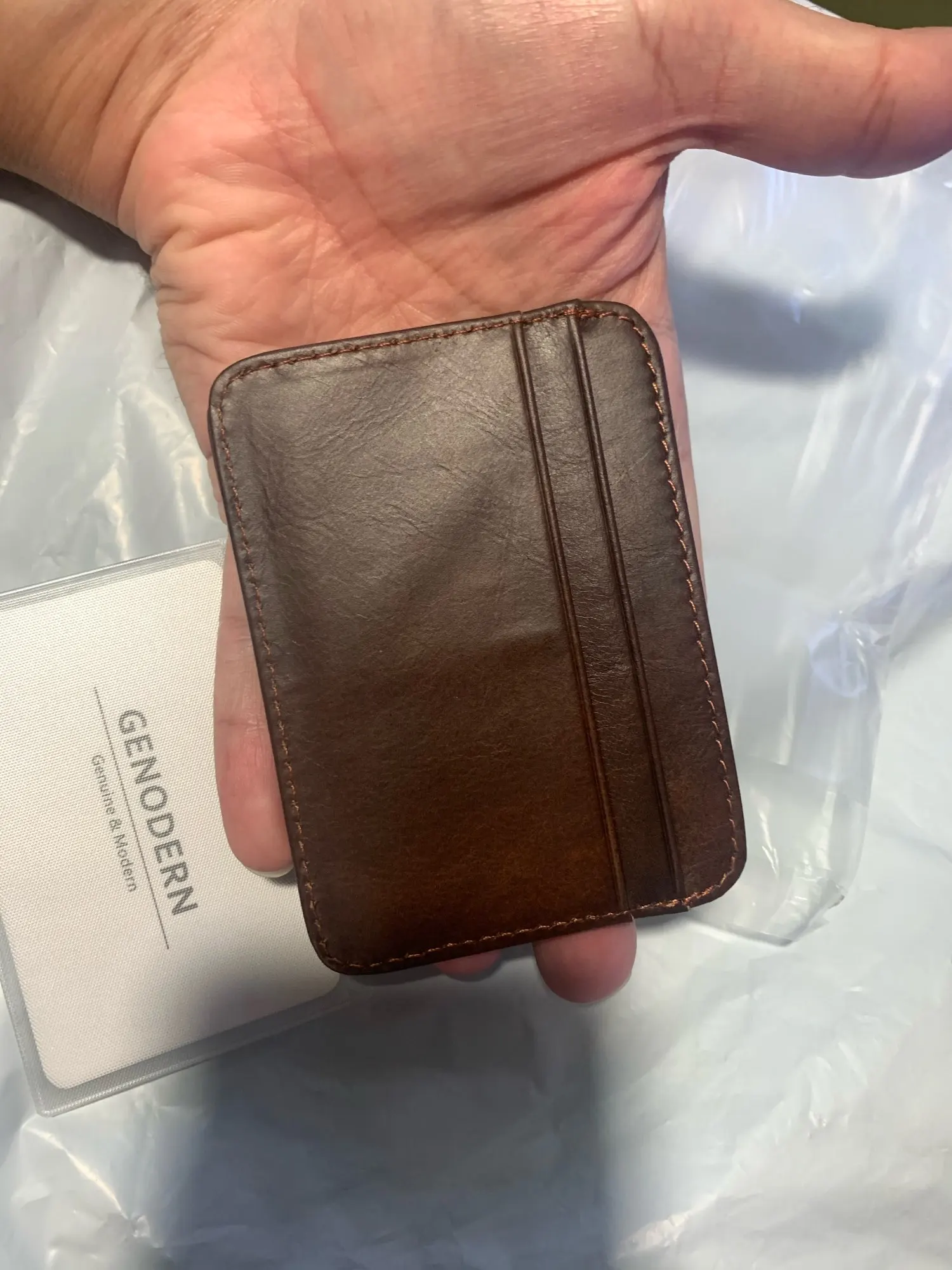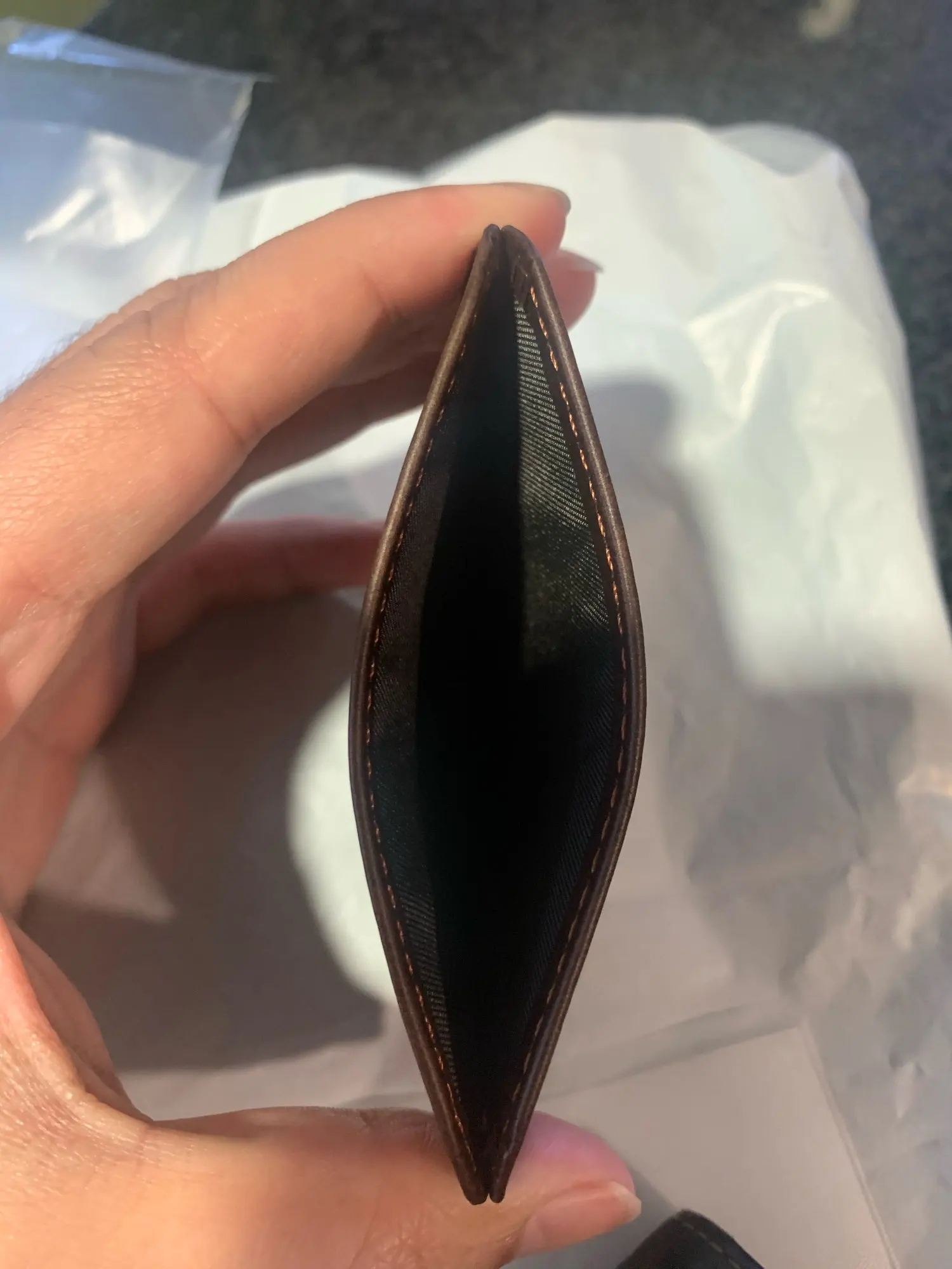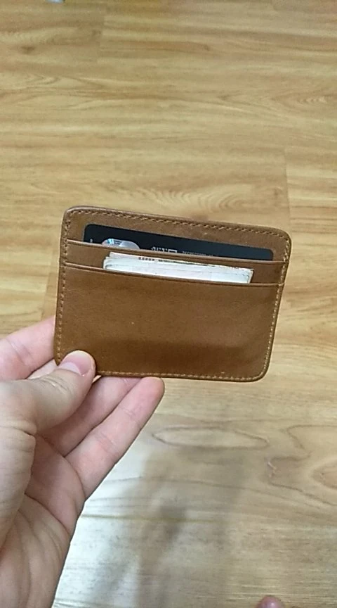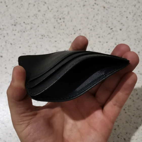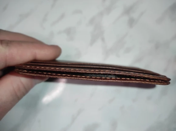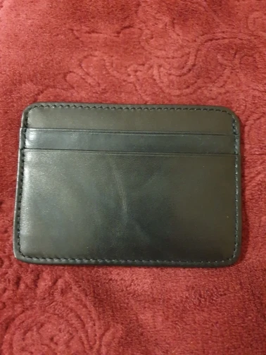 Качественный товар за свои деньги. Прошито достаточно хорошо. Посадка карточек достаточно глубокая. Сделано из остатков кожи (при желании можно найти несколько совсем мелких дефектов кожи - у меня одна точка подтерта и пару микровмятин в виде точек - это если с лупой искать). Хорошая скорость доставки. Хороший продавец. Найду чуть больше свободного времени и добавлю еще картинки.
