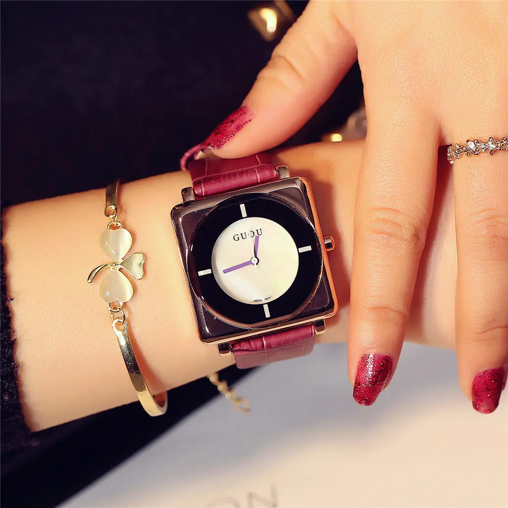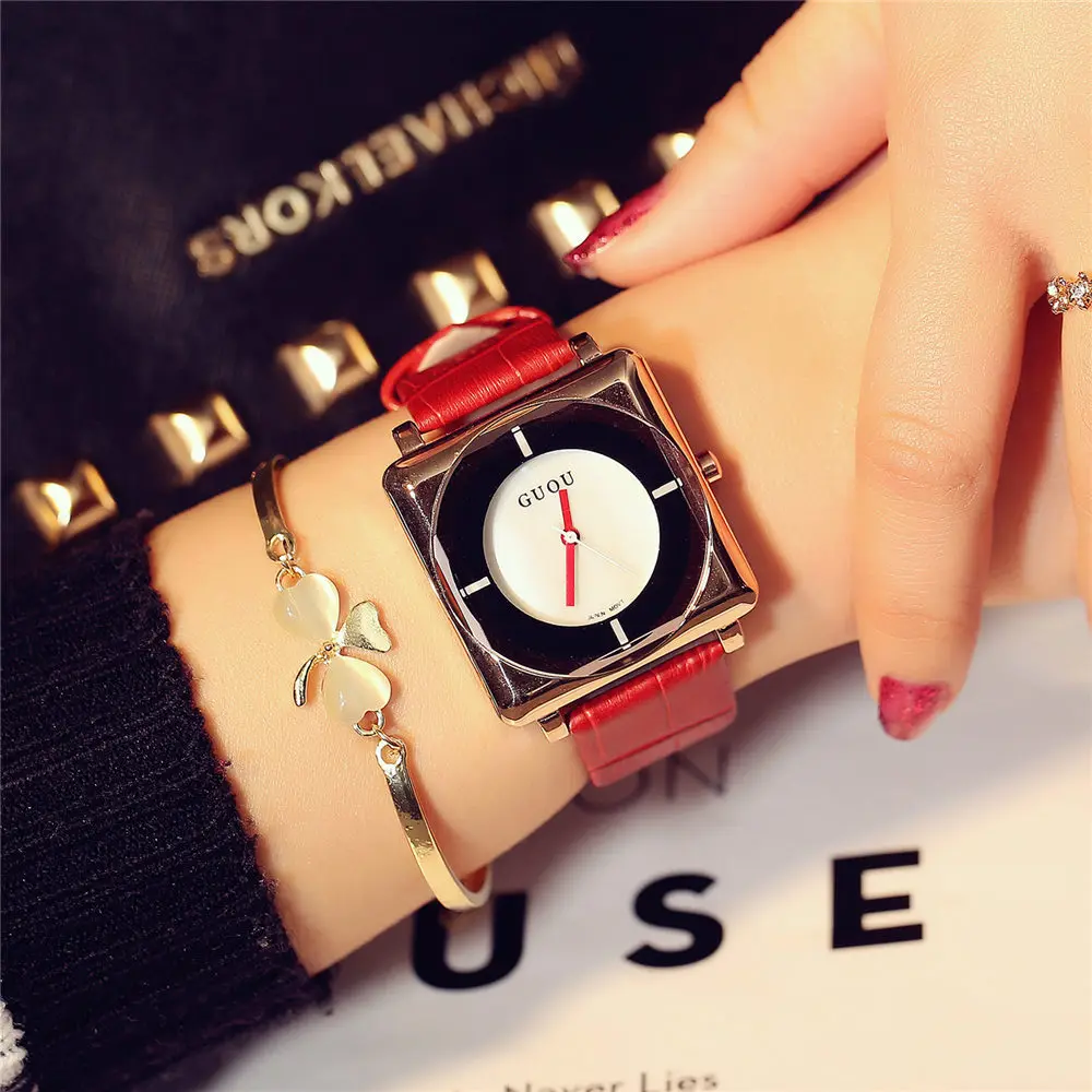 Часы женские GUOU, квадратные, кожаные, квадратные