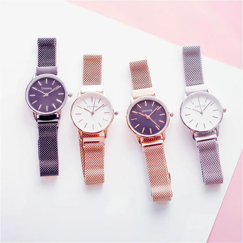 Женские часы Ulzzang, из нержавеющей стали с магнитной сеткой и браслетом, розовое золото