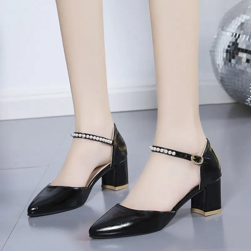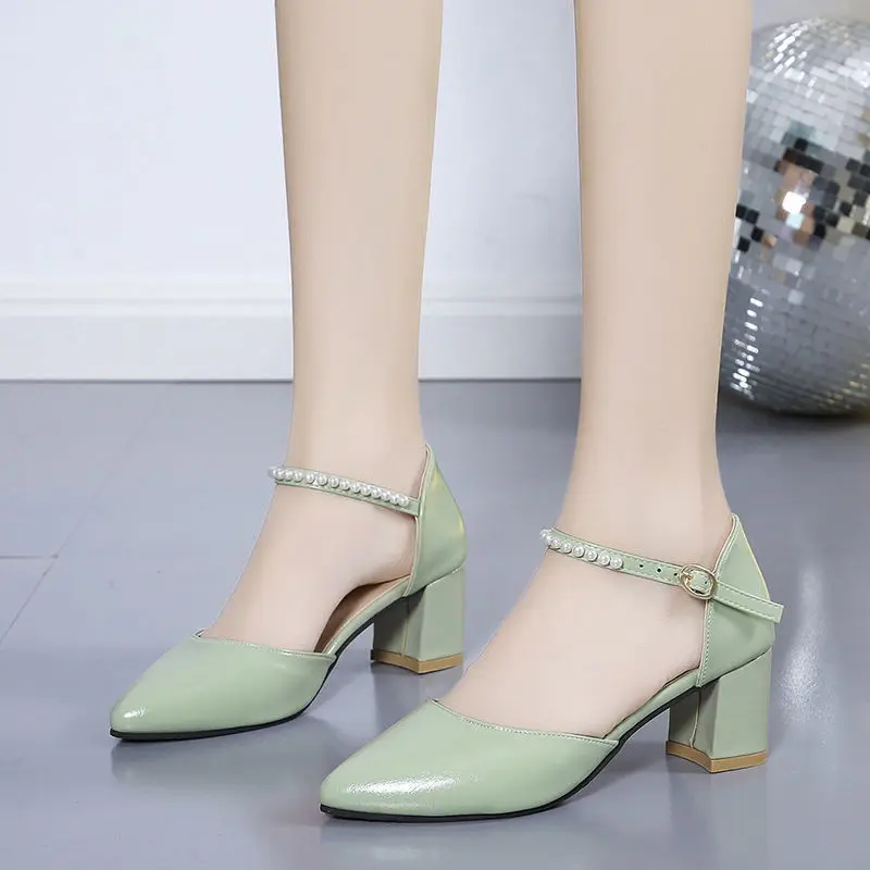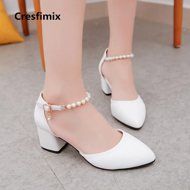 Туфли-лодочки женские из экокожи, модные удобные туфли на высоком устойчивом каблуке, заостренный носок, крутая летняя обувь, белые, E2082