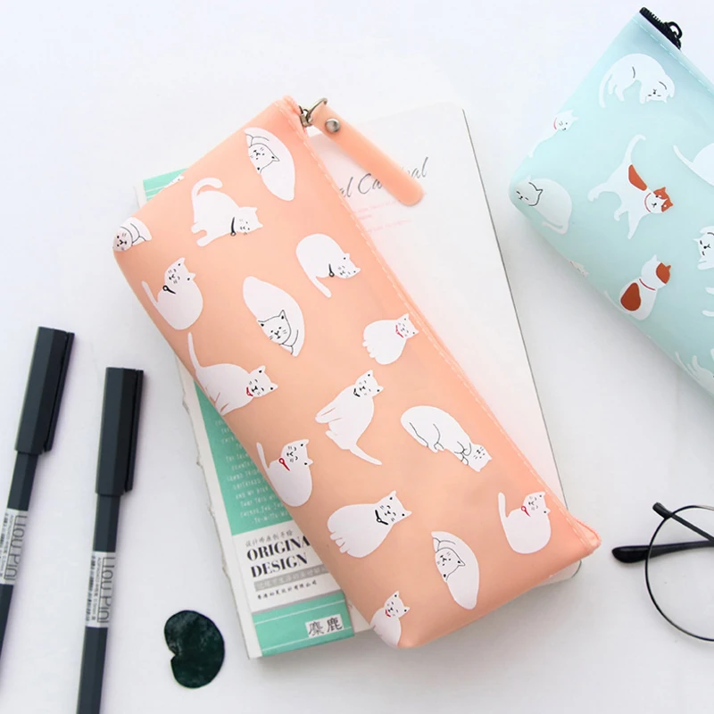 1 шт.лот силиконовый чехол для карандашей с милым котом на молнии ш...