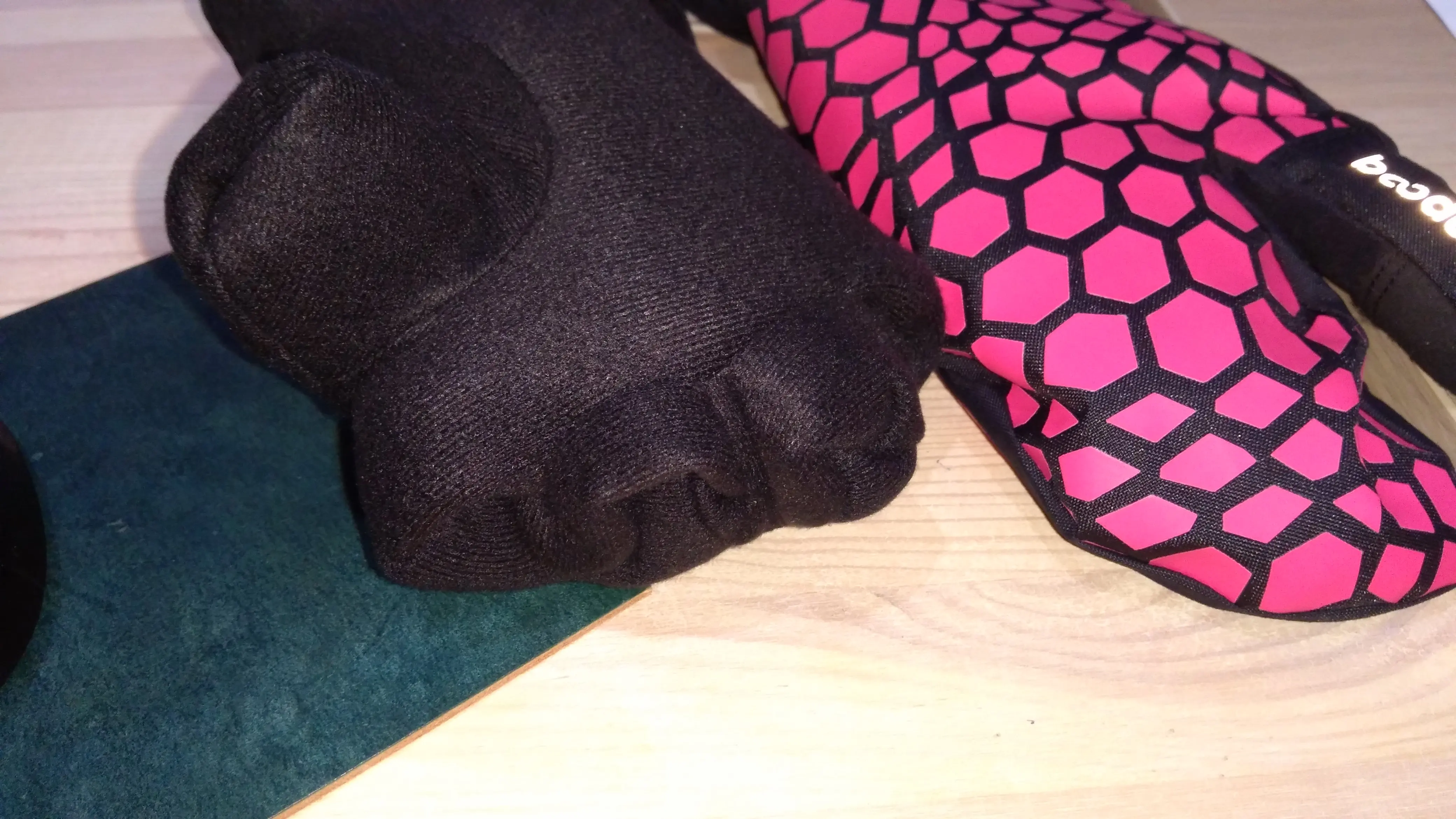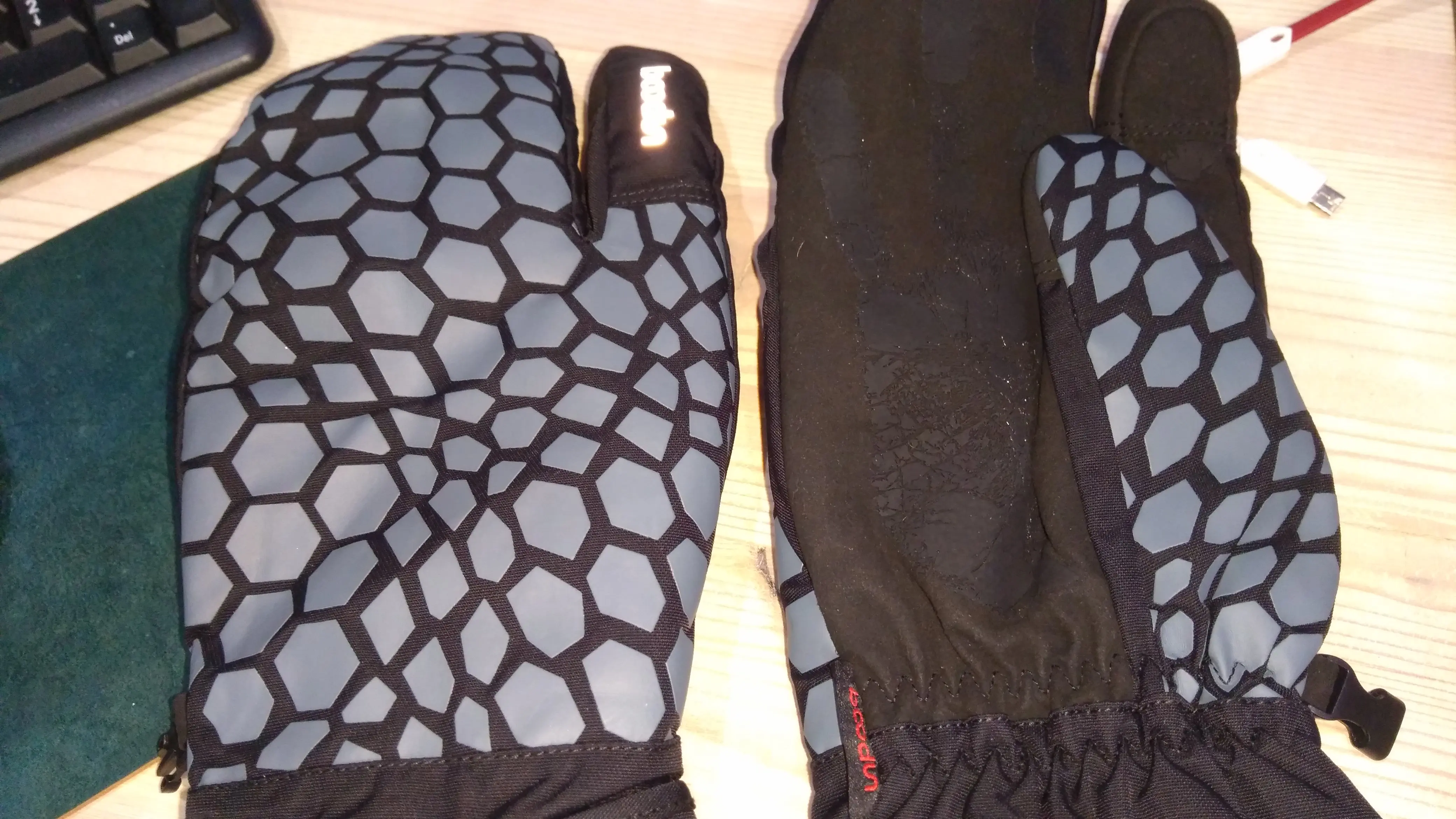 Качественные варежки! Размер L на обхват ладони 22 см оказался впритык -- тонкие перчатки уже не пододеть, но и не прям чтобы критично тесно (от тесноты пальцы быстрее мерзнут). В принципе слой утеплителя в них не особо толстый, зато моторика пальцев под контролем, кончиком указательного или большого пальца достаточно удобно нажимать даже мелкие иконки на экране смартфона. На ладони материал напоминает замшу, думаю будет живучий к истиранию.
