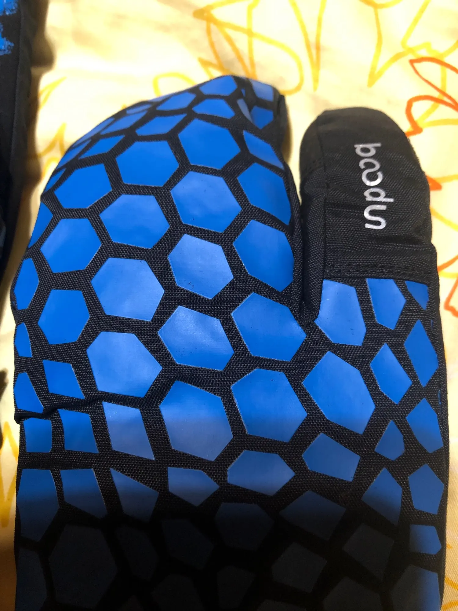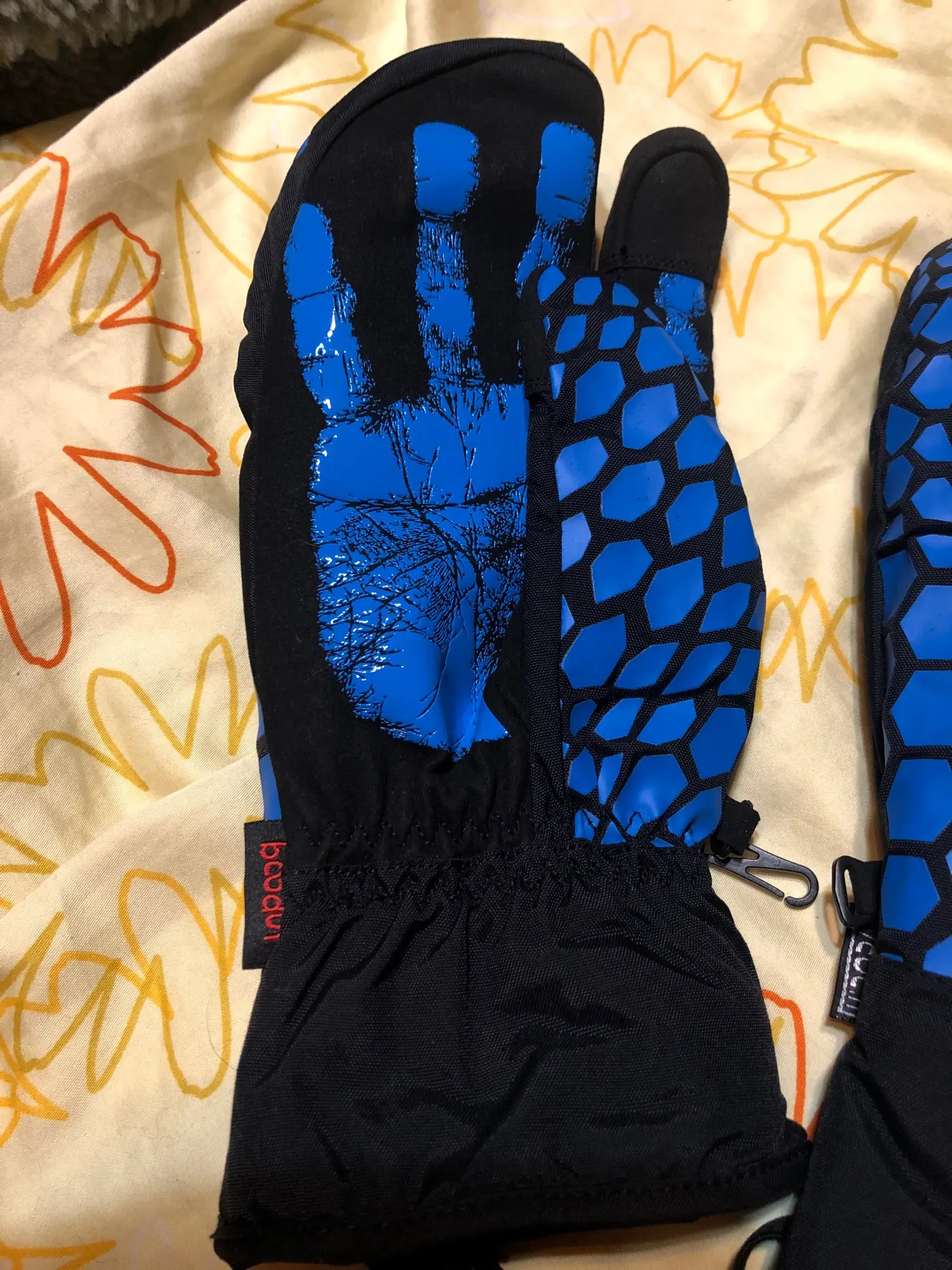 Это не ВАРЕЖКИ. Это перчатки засунутые в общую внешнюю оболочку. Принцип варежек - пальцы вместе и греют друг-друга. Тут этого нет. Цвет не совсем как на фотографиях, по фотографиям внешняя и внутренняя сторона лаковые, с блеском. На самом деле внешний рисунок матовый, цвет шестигранников отличается от цвета ладошек. В остальном качество хорошее, сенсор реагирует на палец. Я взял на размер больше, что бы указательный палец прятать в общую рукавицу. А из-за долбанных "пальцев" это сделать нельзя.