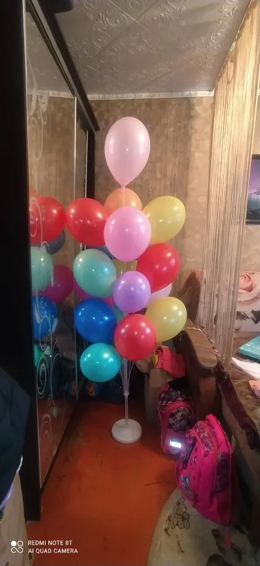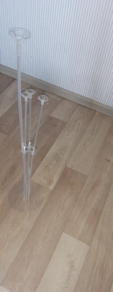 Стойка хороша только для фото, шары смотрятся отлично, но если рядом бегают дети, то палочки на которые крепятся шары вываливаеются из подставки. Более тяжёлые шары немного сгибают прут в месте стыка.Для крепкости можно скрепить скотчем, возможно, тогда палочки не будут сгибаться и выпадать из подставки. С продавцом не общалась, заказ был отправлен очень быстро.