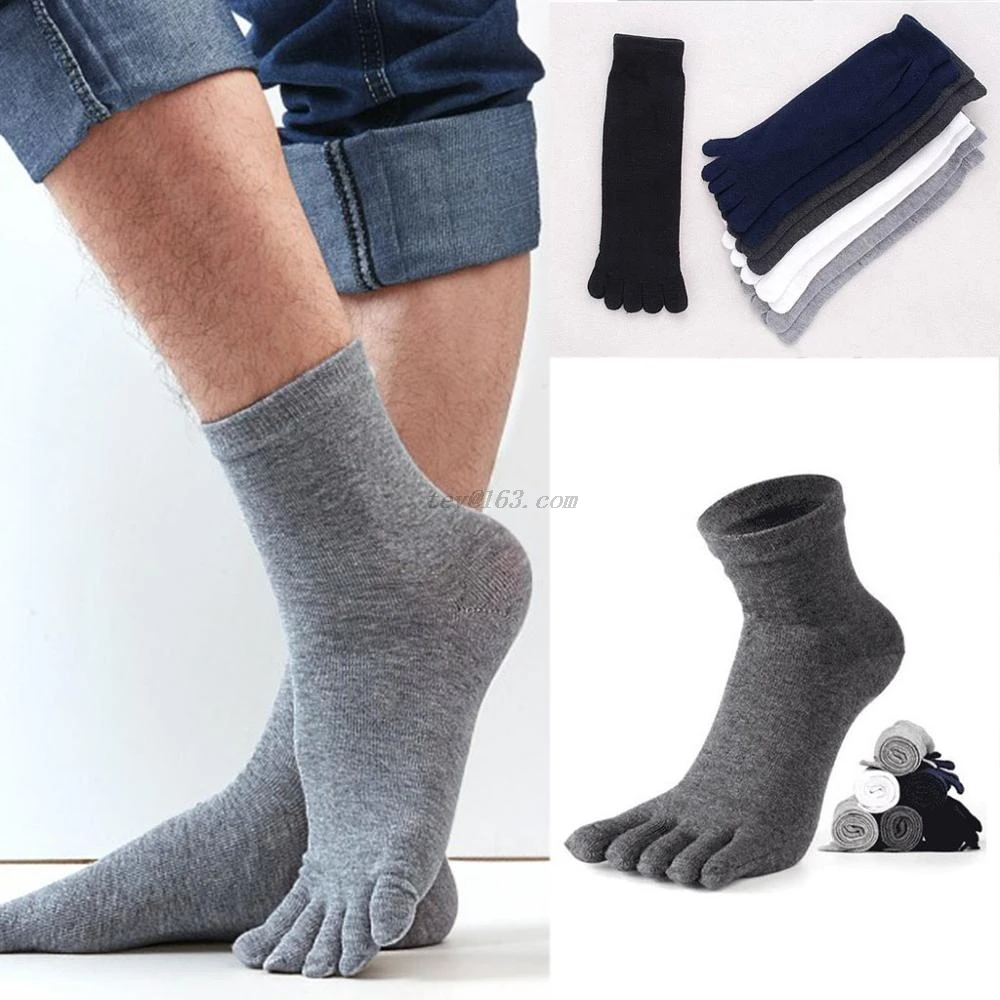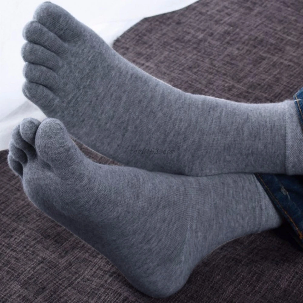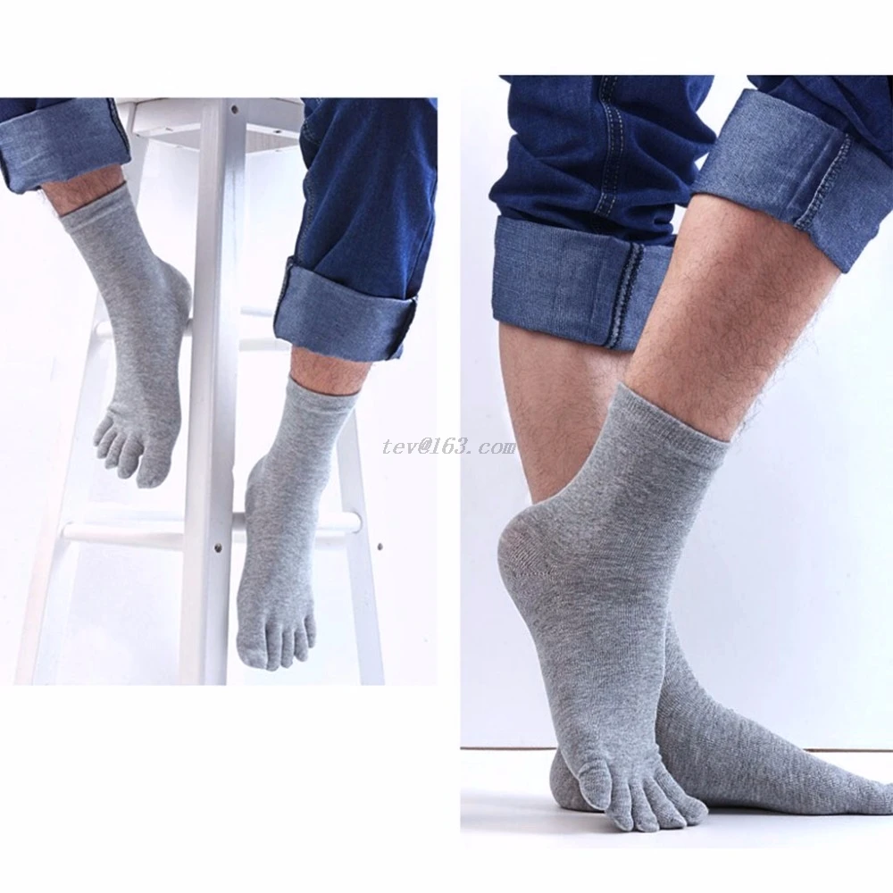 Мужские носки с пятью пальцами из мягкого полиэстера и хлопка, однотонные дышащие