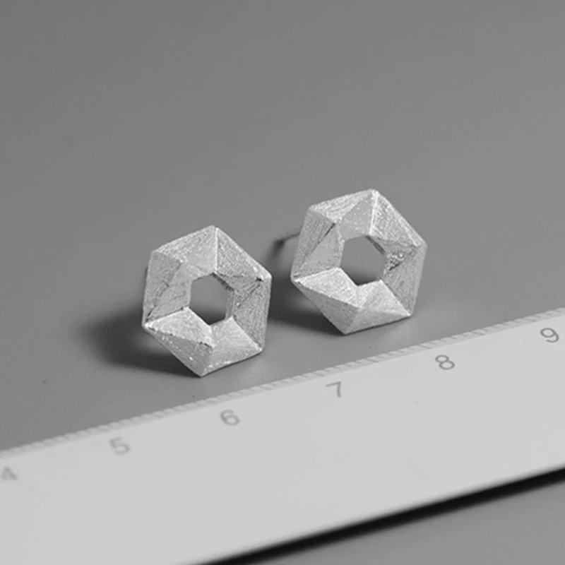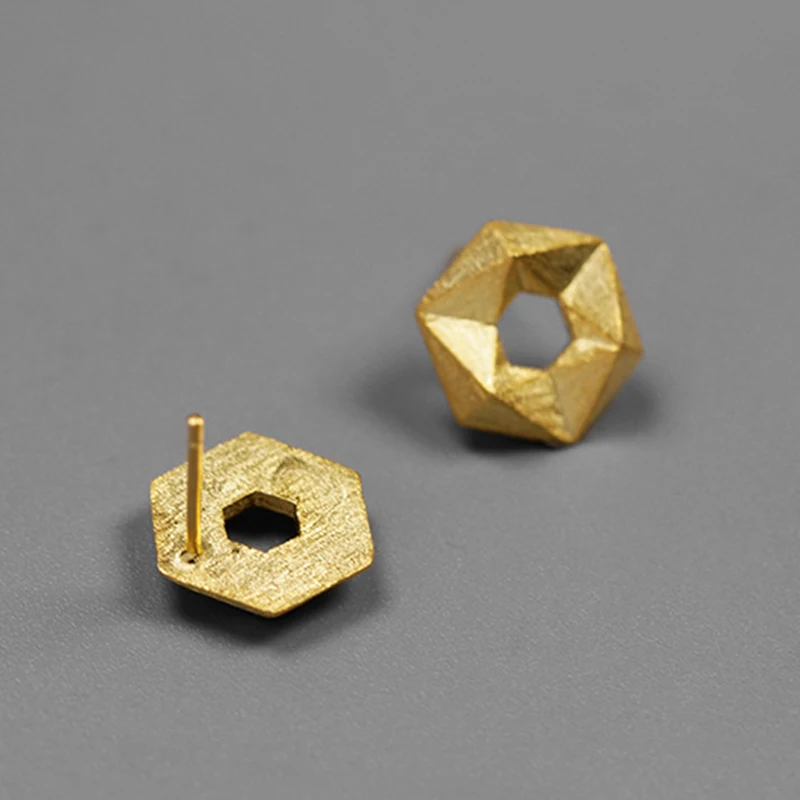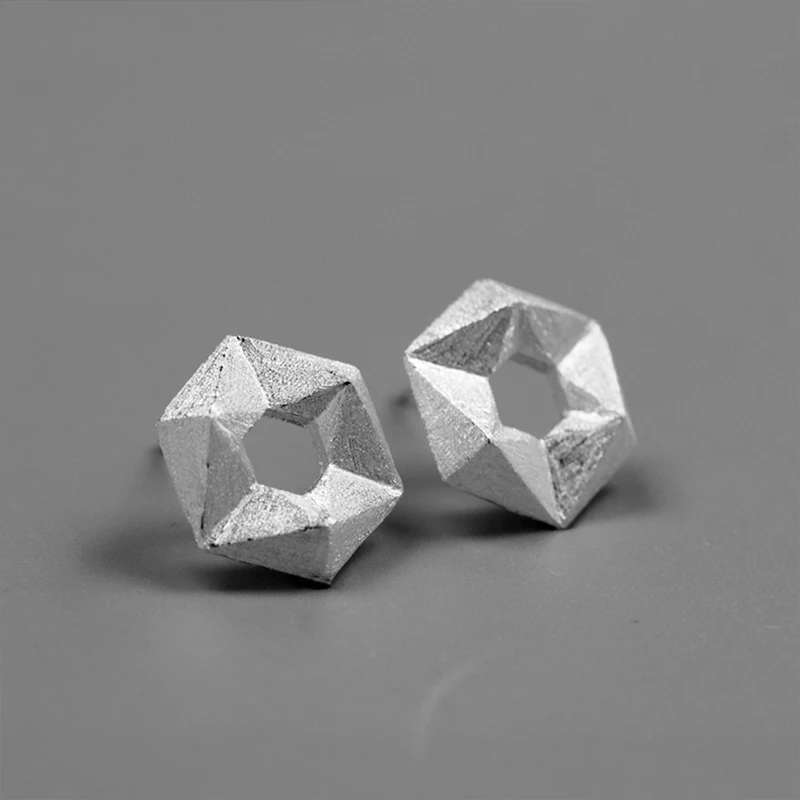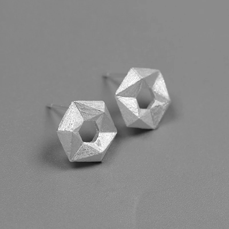 Lotus Fun Moment реального 925 пробы серебро Модные украшения минимализм Стиль стереоскопического шестиугольник серьги для Для женщин Brincos