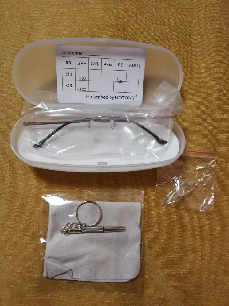 Продавец подтвердил Мой рецепт, прежде чем сделать их, и он идеален :) хорошее качество, цена и быстрая доставка! Очки крепятся и с чехлом, который включает в себя ткань и маленькие отвертки, которые вы можете положить в ваши брелки, чтобы отрегулировать их. Очень рекомендуется.