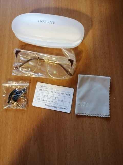 Получила сегодня очки. Очень хорошая оправа. У нас такая стоит минимум в два раза дороже! Металлическая. На вид прочная, насколько будет стираться - посмотрим. Заказывала очки с облегченными пластиковыми линзами по рецепту с остегматизмом небольшим. Сделали! ! Очки такого уровня здесь мне обошлись бы больше 3000 рублей, так я заплатила 2000.Виду в низ, прямо, ненормалтно хорошо, рсобенно, после временного варианта. Можно смело у низ заказывать по рецепту. Продавец в подарок положил салфеточку, чехол, отвертку и заушники. За что отдельное - спасибо. Шла посылка долго. Продавец очень общительный, продлил срок защиты покупателя, когда не укладывались в сроки, хотя, в принципе, на треке уже показывало, что посылка получена, но у нас тут в Донецке свои сложности, поэтому без разговоров продлили срок ожидания. Все товары сложили в одну посылку, за что отдельное спасибо, т. к. почта Донбасса берет за доставку сейчас 115 рублей. На одной вещи - это дорого. На трех уже нормально.