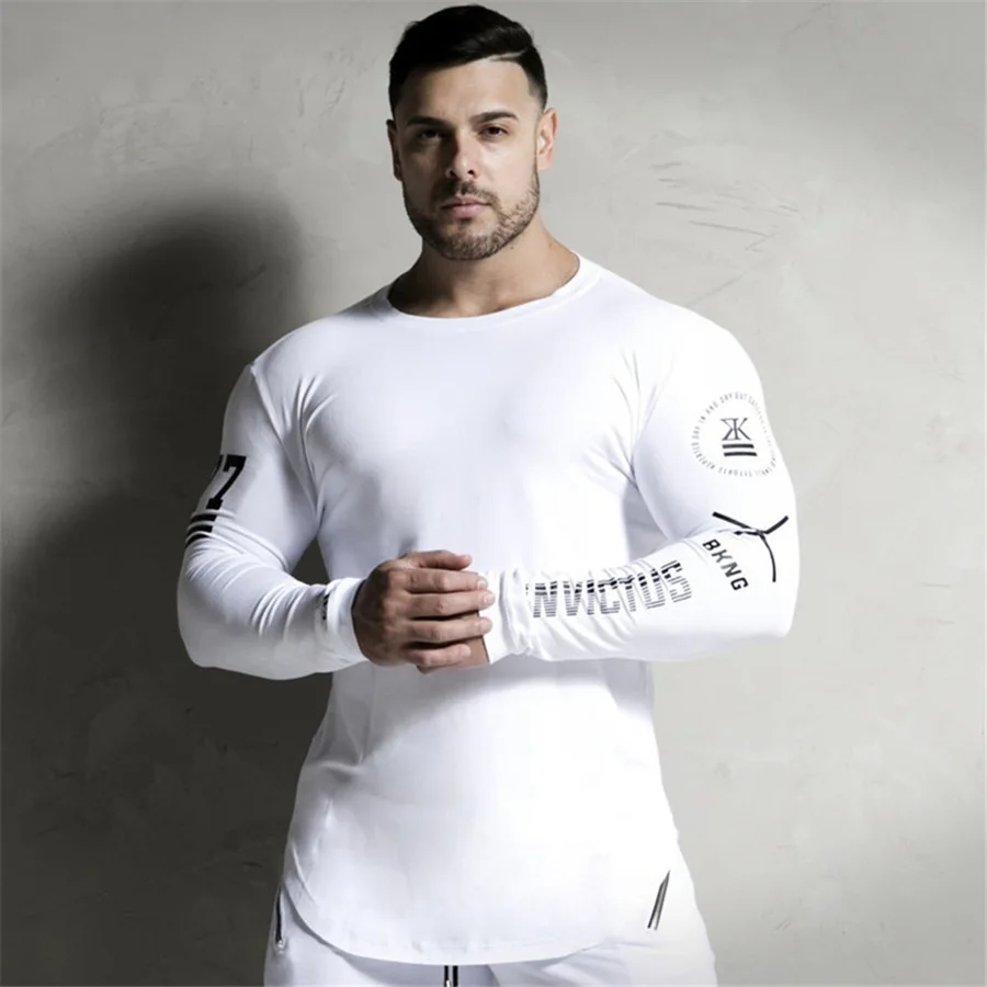 Мужская облегающая футболка с длинным рукавом, Повседневная модная ...