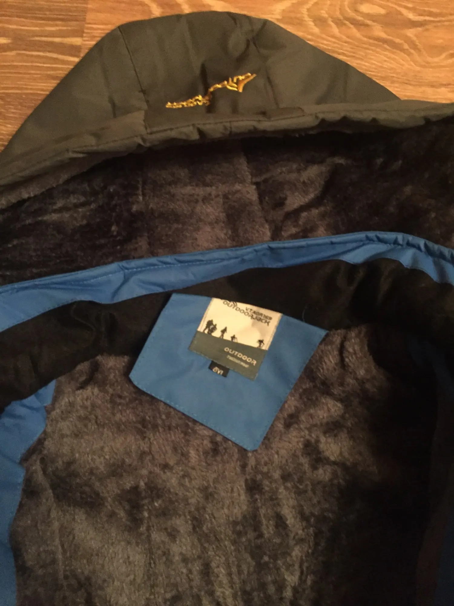 Куртка тёплая, ткань сверху не промокает, внутри мех