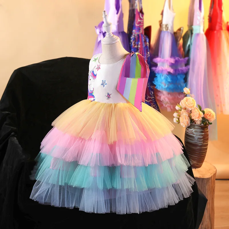 Платье-пачка с единорогом для девочек, Пастельное, Радужное, вечерние дня рождения