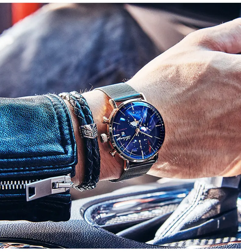 AILANG Для мужчин механический автоматический модный топ Брендовые спортивные часы Tourbillon Moon Phase Нержавеющаясталь часы мужской часы