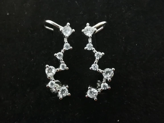 Серьги просто шикарные. Для толстой мочки просто находка. Единственный минус ,полукольцо, которое крепится вверху иногда падает и приходится закреплять опять. Можно конечно его подогнуть немного,но тогда больно зажимает край уха. Качество на высоте,не потемнели. Серебро это или нет, может только сказать ювелир.