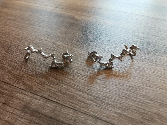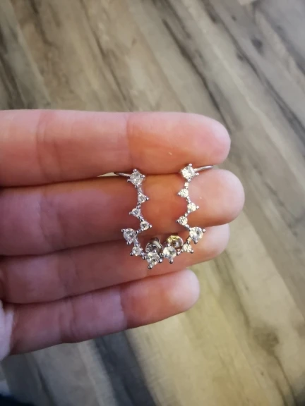 Очень быстрая доставка, серьги красивые, хотя я вижу их очень хрупкими, посмотрим, как долго это продлится. Я надел их, чтобы попробовать их, и если вы отрегулируете верх, кажется, что они хорошо держатся, мы увидим, когда я ношу их весь день.