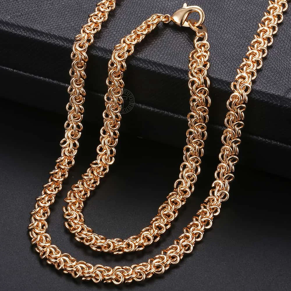 Набор украшений для мужчин и женщин, цепочка с поворотным звеном 585 пробы, ожерелье из розового золота, Набор браслетов для мужчин и женщин, ювелирные изделия, вечерние, подарки 6 мм, KCS05