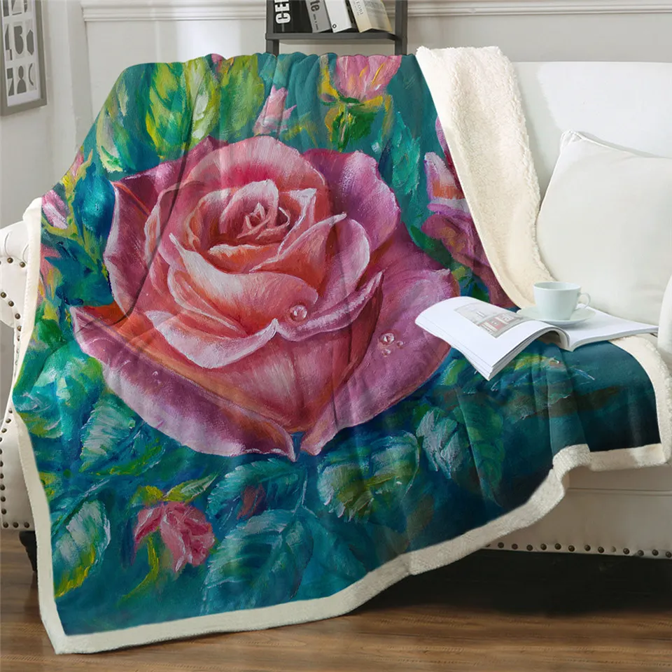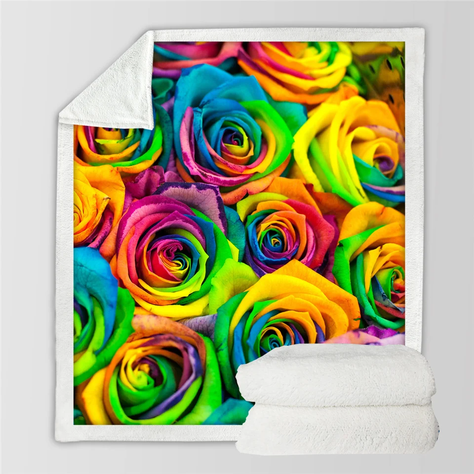 Одеяло BeddingOutlet с цветными розами, зимнее покрывало с 3D принтом цветов, акварельный цветочный плюшевый плед 150x200 см