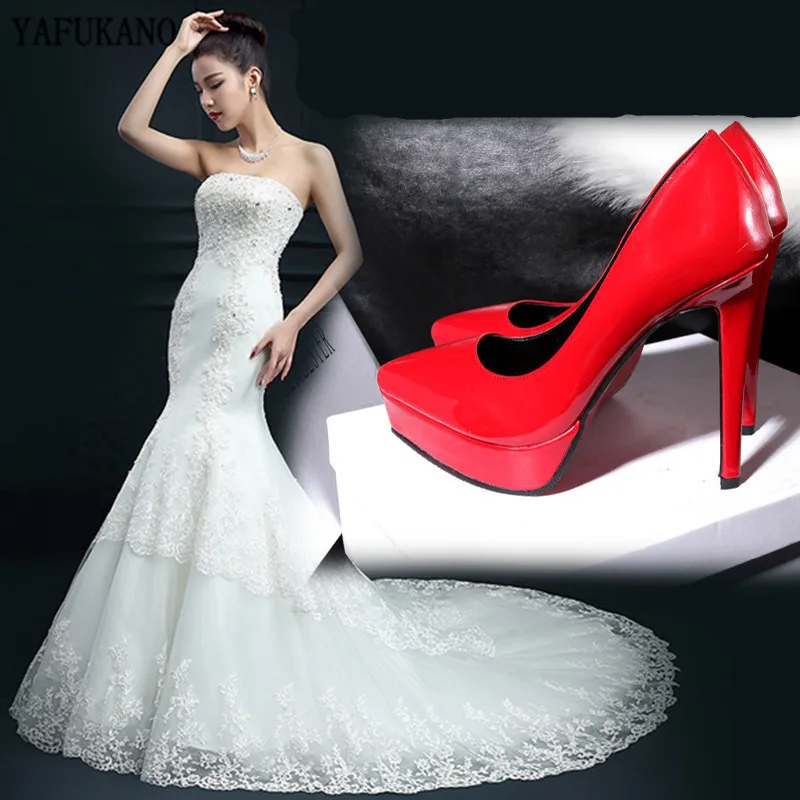 Женская обувь на очень высоком каблуке 12 см пикантные тонкие туфли на шпильке в европейском и американском стиле красные свадебные туфли