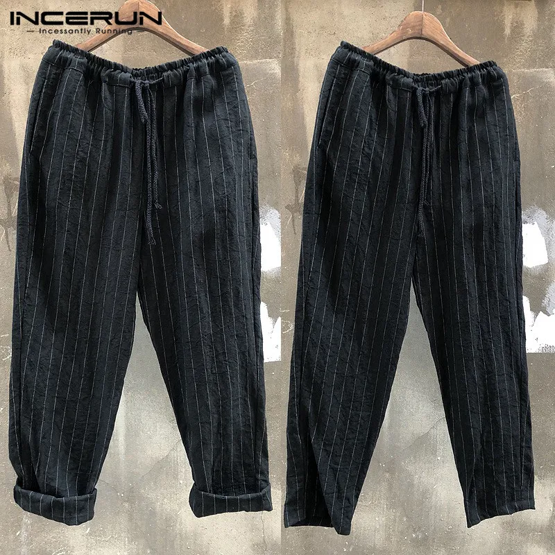 Брюки INCERUN мужские, свободные, повседневные, в полоску, с карманами, прямые, мешковатые