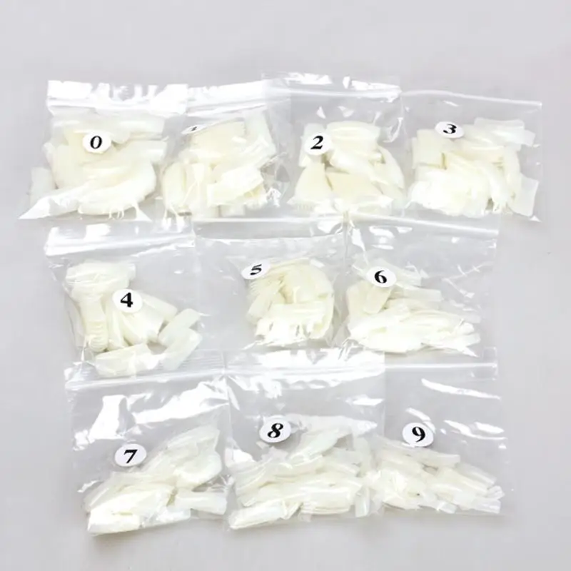 100% новый и высокое качество10 различных размеровПоставляется в упаковке в размерах 0-9 (50 шт. каждого размера и всего 500 шт.)Разделенный с каждым размеромИдеально подходит как для профессионального наращивания ногтей, так и для французского изготовления ногтейПодходит для использования с гелем, акрилом или стеклом для большинства людейЦвет: телесный, белый, может немного отличаться от изображения из-за того, что светильник разная партия!Материал: акрилДлина ногтей: прибл. 2-3 см (мин-макс)Ширина ногтей: прибл. 0,7-1,5 см (мин-макс)