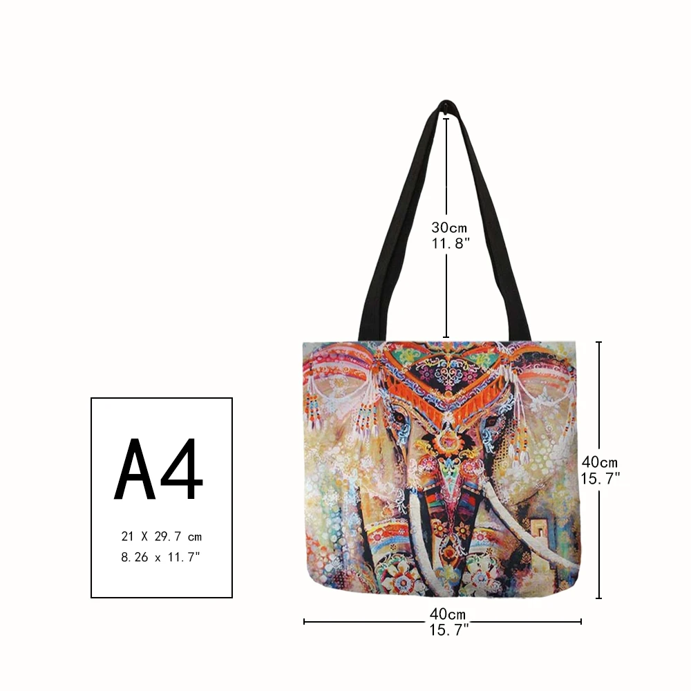 Красивая дизайнерская сумка для женщин с изображением слона и деревьев, Льняная сумка для покупок, повседневная женская сумка