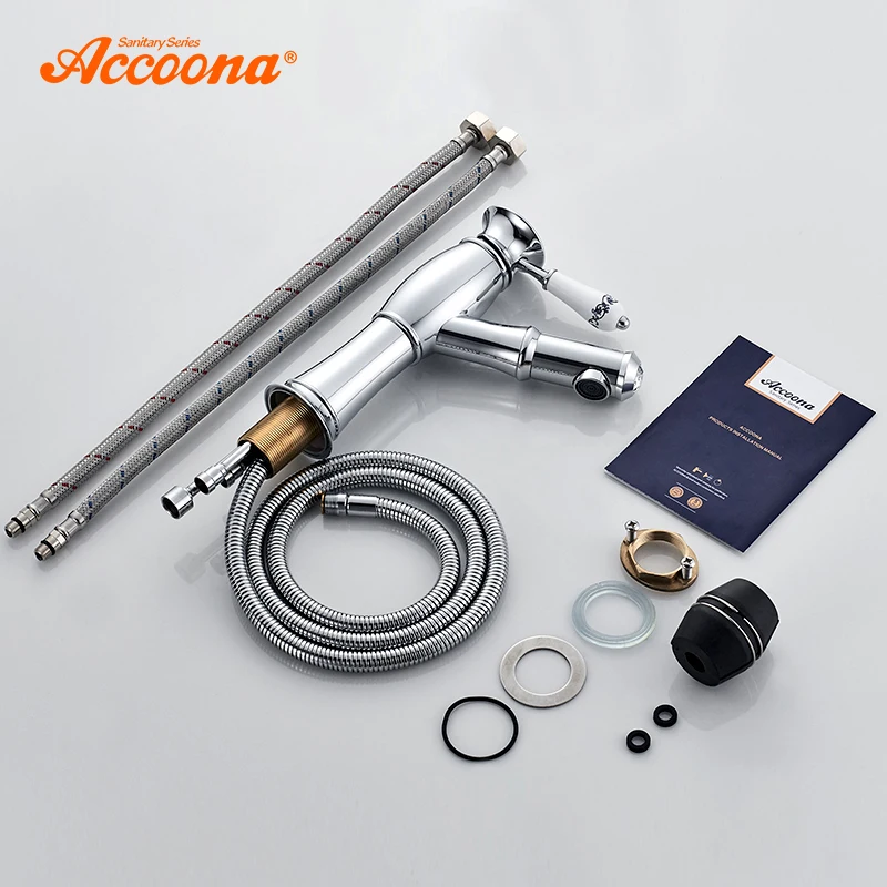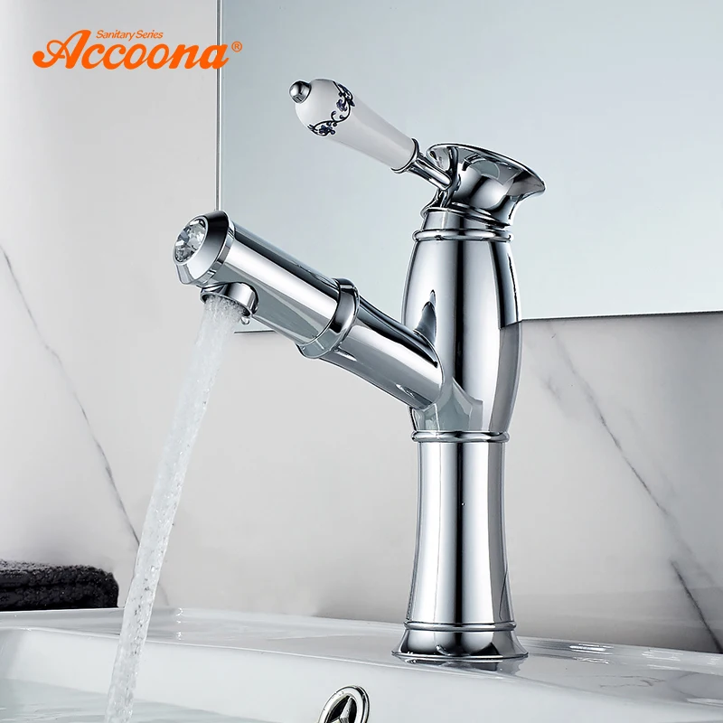 Однорычажный смеситель Accoona для ванной комнаты, хромированный полированный Твердый латунный выдвижной смеситель для раковины, смеситель для воды, метчики для ванной комнаты