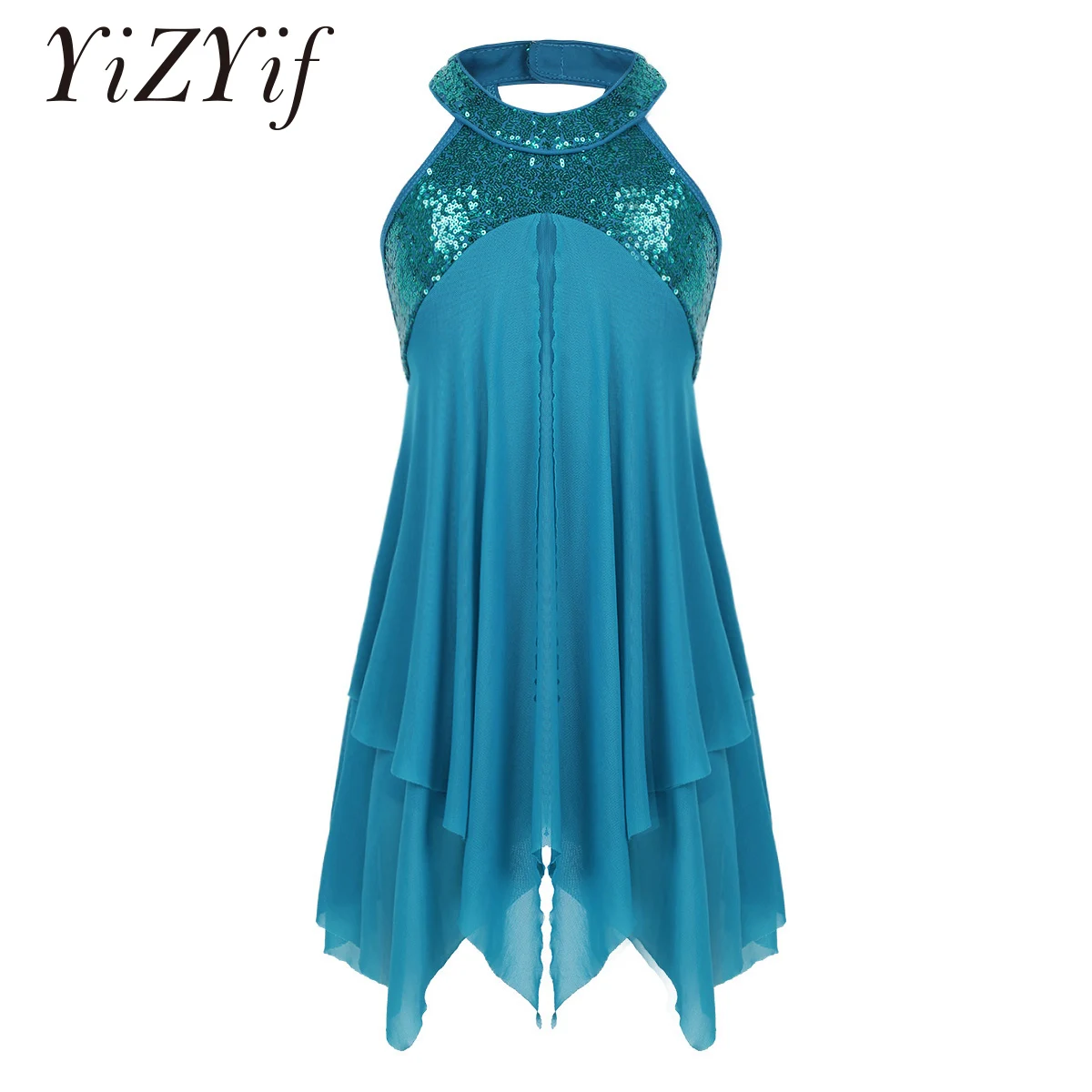 Балетное танцевальное платье для девочек с блестками и перекрестной спиной, гимнастическое трико, лирическое современное бальное танцевальное платье для латиноамериканских танцев