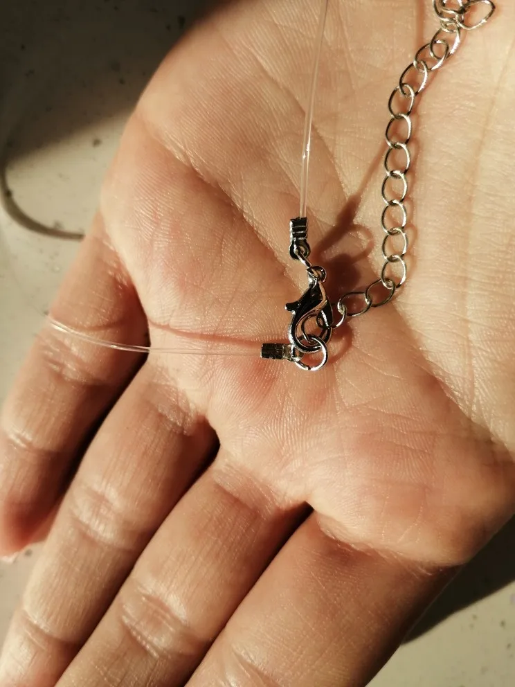 Прозрачная леска, мне не понравилось. Кулон красивый