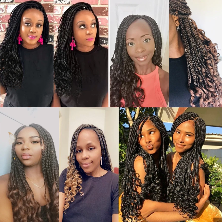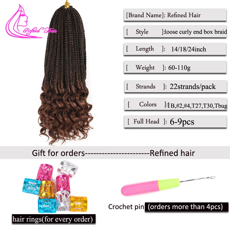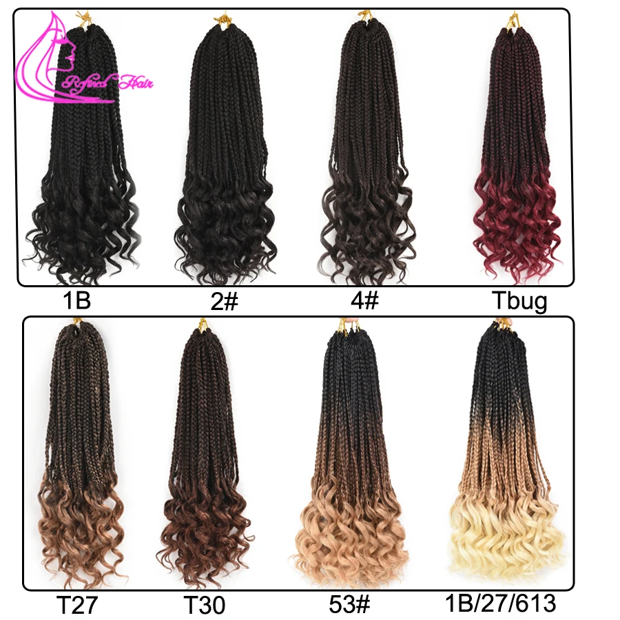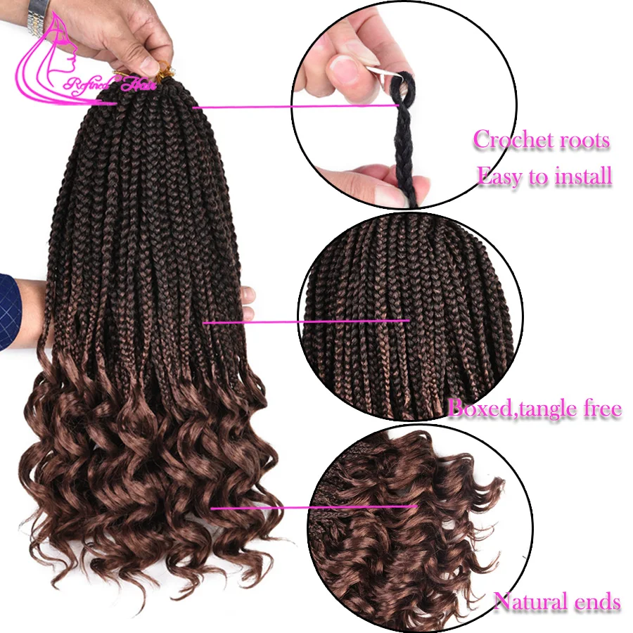 Утонченные 22 пряди вязанные крючком косички свободный конец Омбре косы волосы синтетические плетеные удлинители волос черный коричневый бордовый