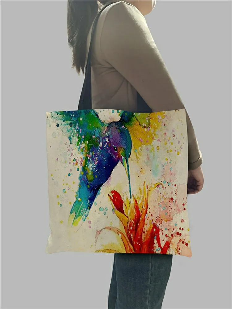 Женские сумки для покупок с креативным рисунком, практичные офисные экологически чистые сумочки на плечо с акварельным рисунком птицы, совы, стрекозы