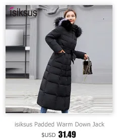 Женская Стеганая куртка Isiksus, черная теплая куртка-пуховик размера плюс с капюшоном, Зимняя парка WP013, 2018