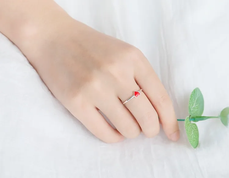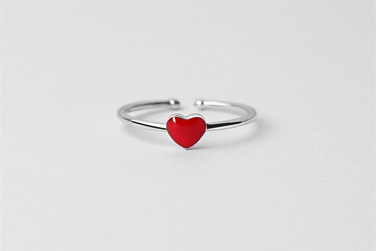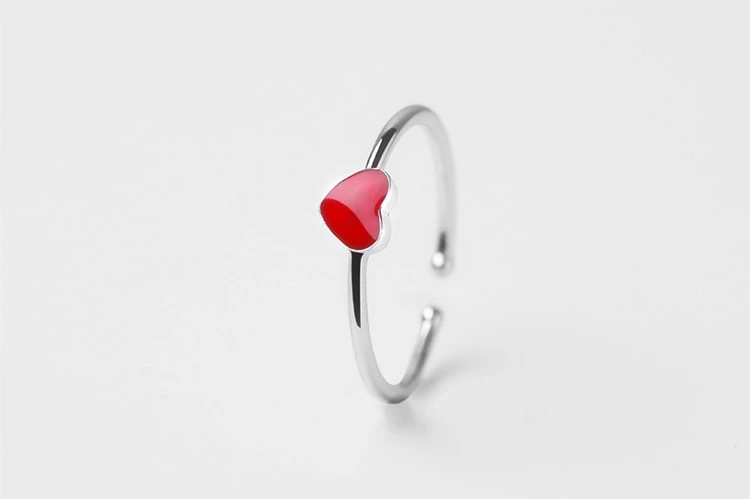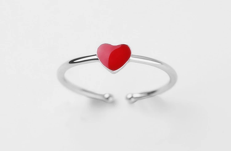 Кольцо женское открытое из серебра 925 пробы с красным сердцем