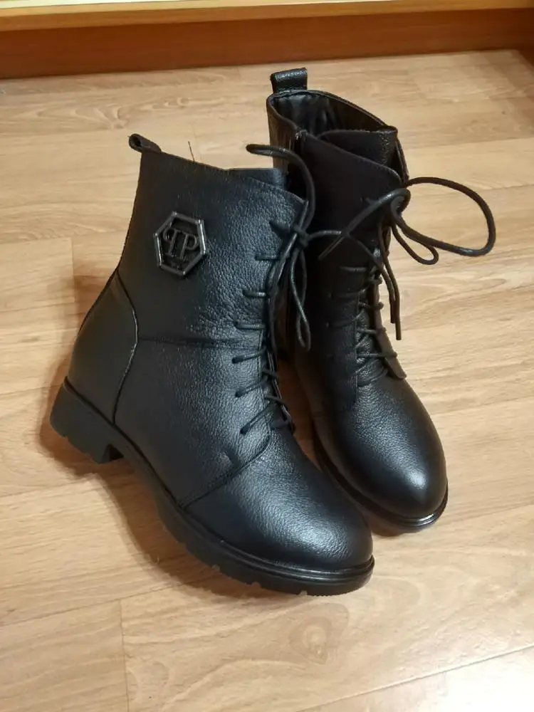 Ботинки не кожаные однозначно, как описывалось. Маломерят страшно, ношу 39. Брала чтобы одеть с тёплым носком, но только с капроном. буду делать бесплатный возврат.