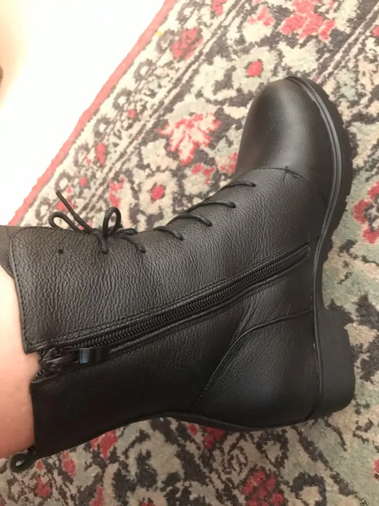Доброго времени суток, тому, кто читает. Брала я уже п/сапожки этой фирмы, относила их 5 сезонов и не жалуюсь. Лёгкие и мягкие. А эти п/сапожки ещё лучше. Выглядят более классически, лучше чем на картинке, а так как я носила их обувь несколько сезонов, надеюсь и эта пара меня не подведёт. А старенькие ещё живы и будут ходить в дождь и слякоть, а новенькие на люди. Очень удобно что они с замком и на шнуровке, особенно это удобно при отёчных ногах. Короче рекомендую обувь и продавца. Спасибо производителю и продавцу. Удачи. Пришли за месяц в на почт Новосибирска. Дольше ходили и лежали в России.Удачи.