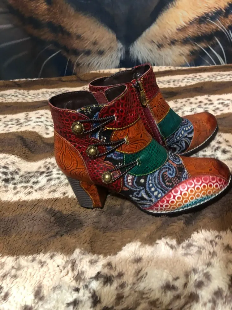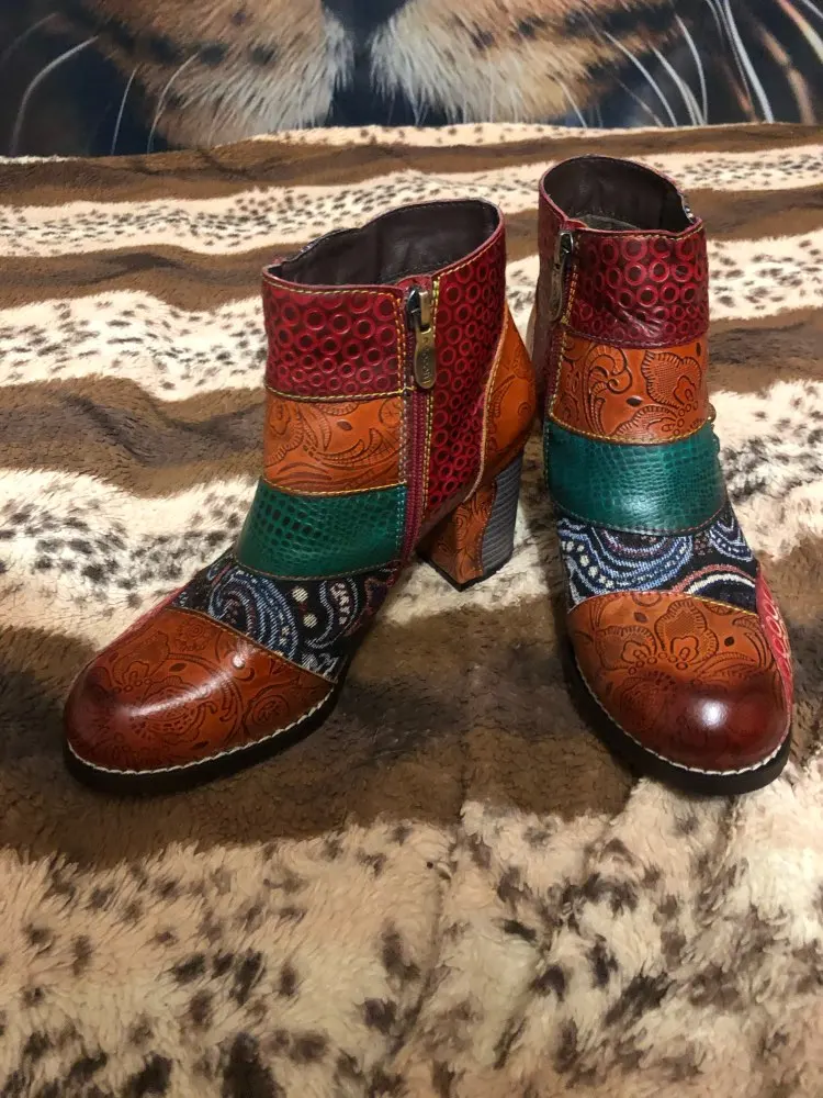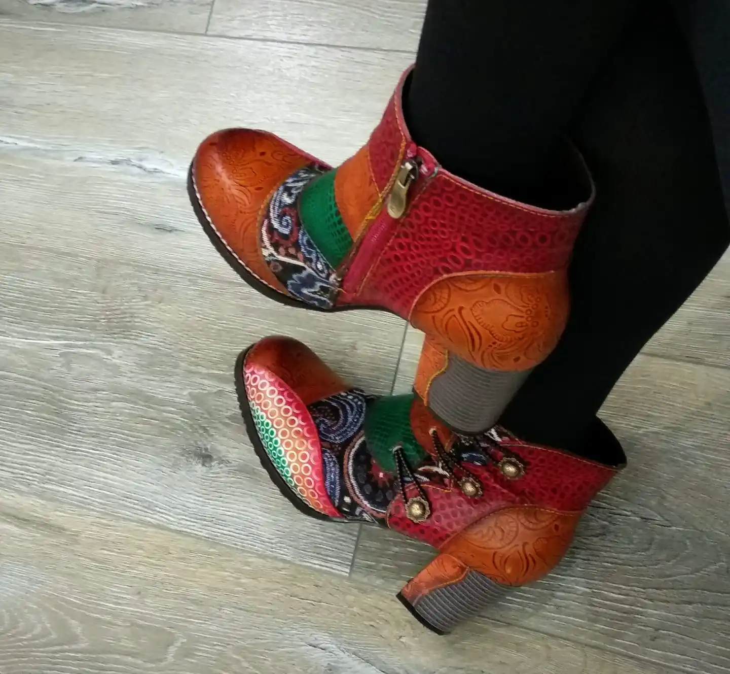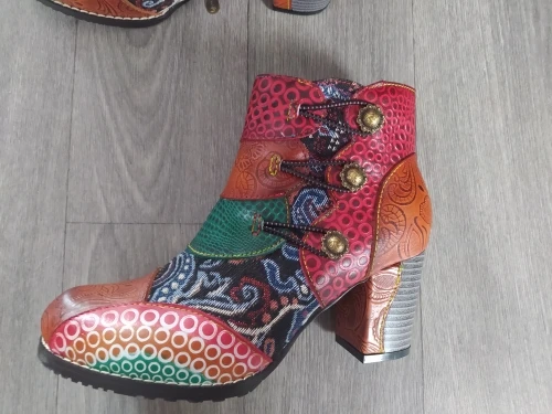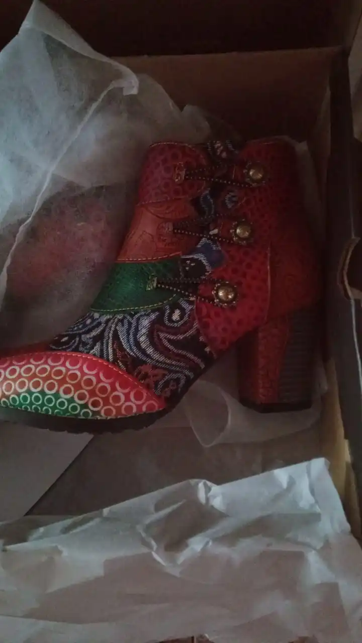 SocofyВинтажные женские ботильоны с принтом; Женская обувь из натуральной кожи в стиле ретро; Женские ботинки на высоком квадратном каблуке; 2020