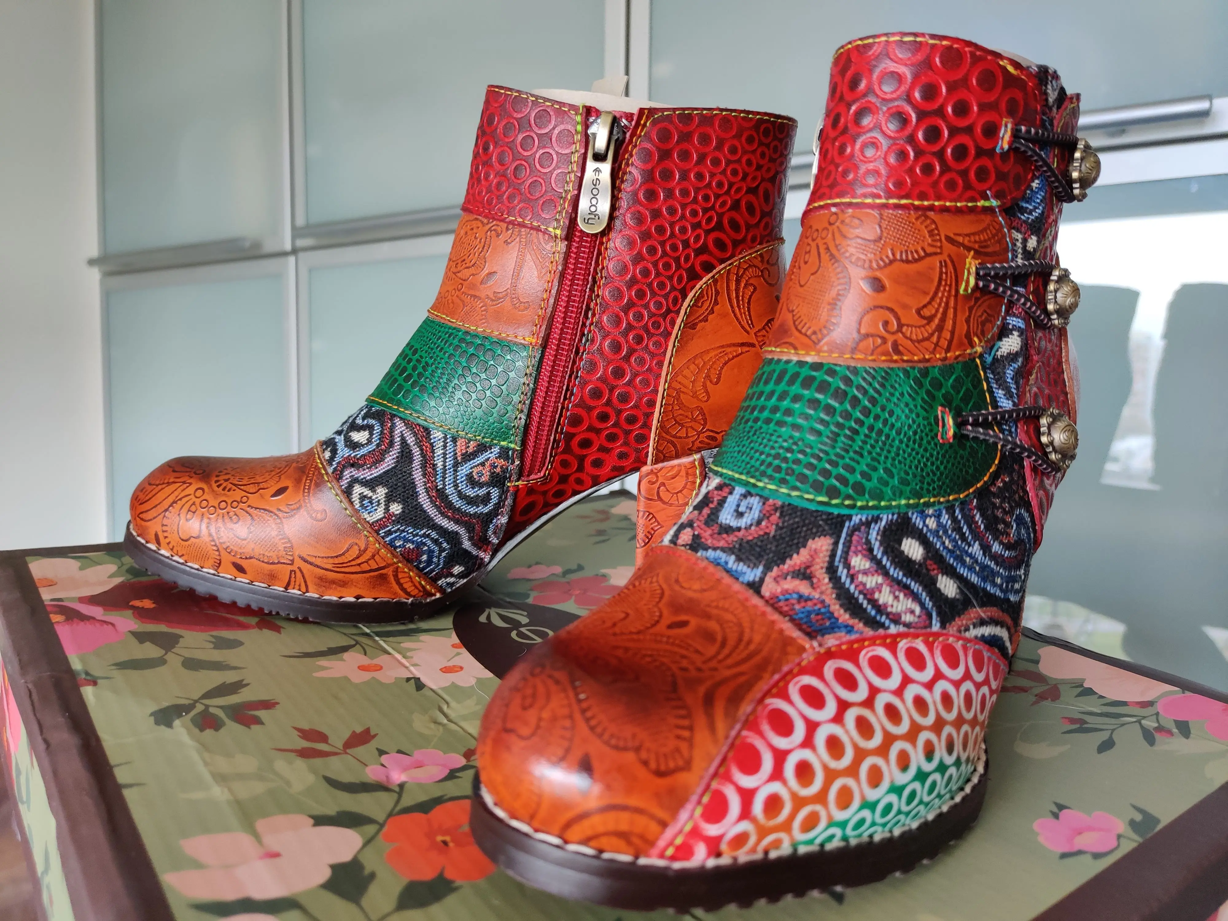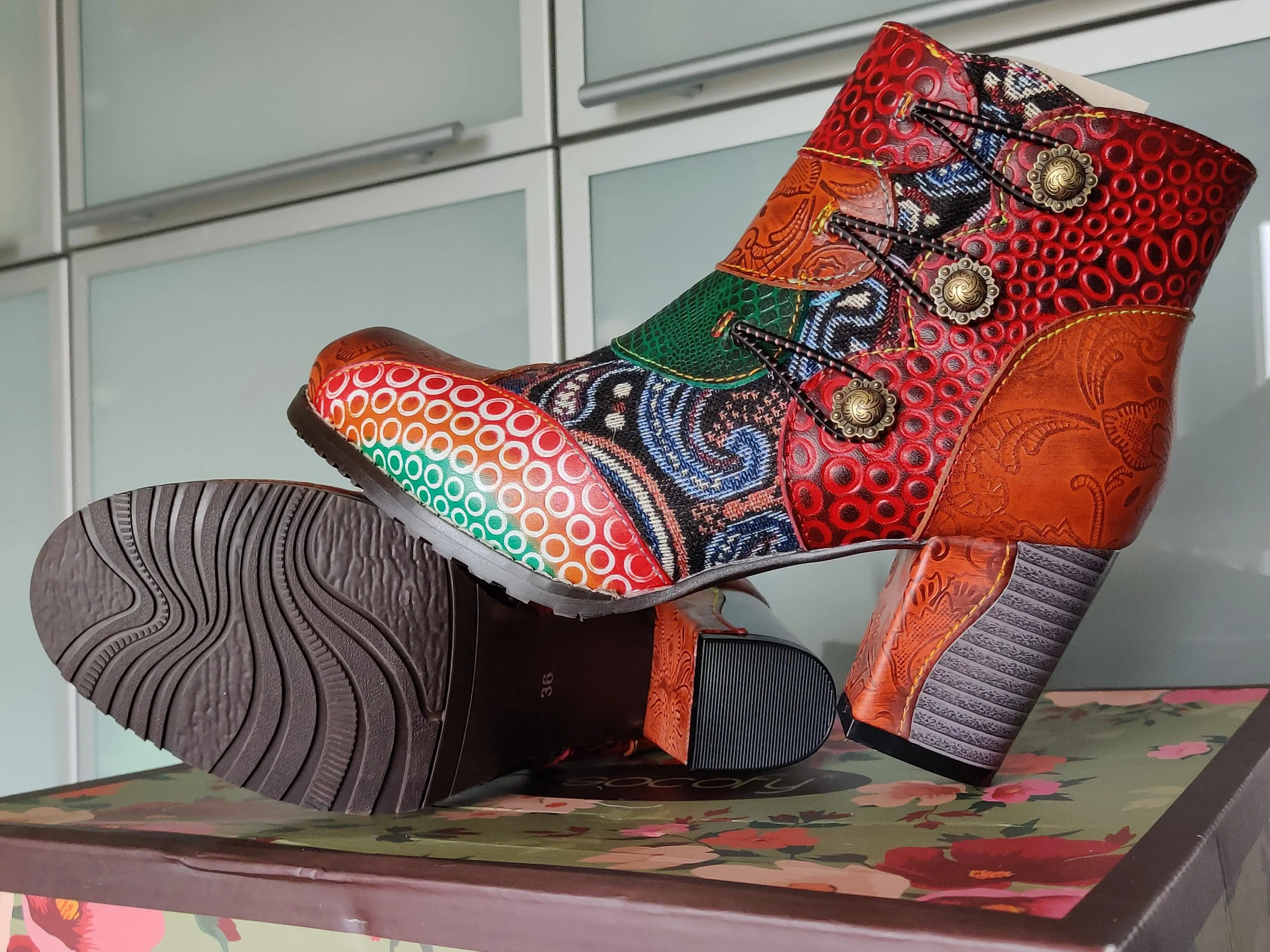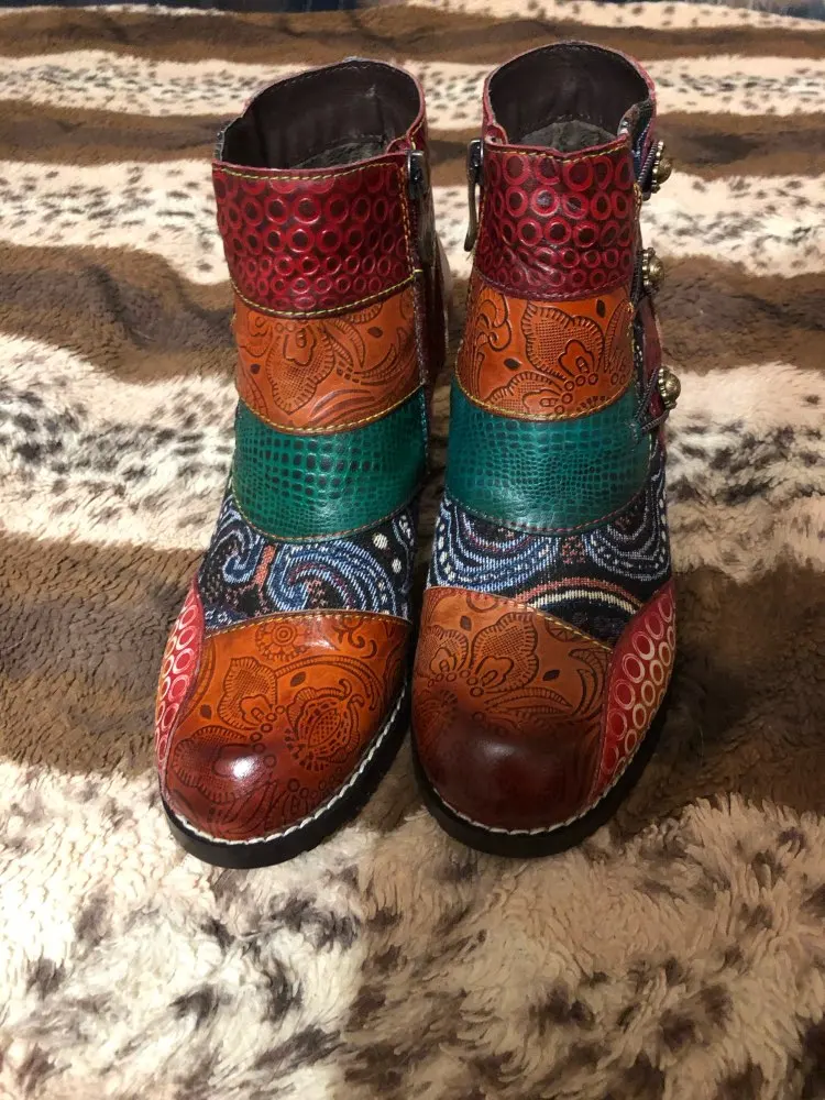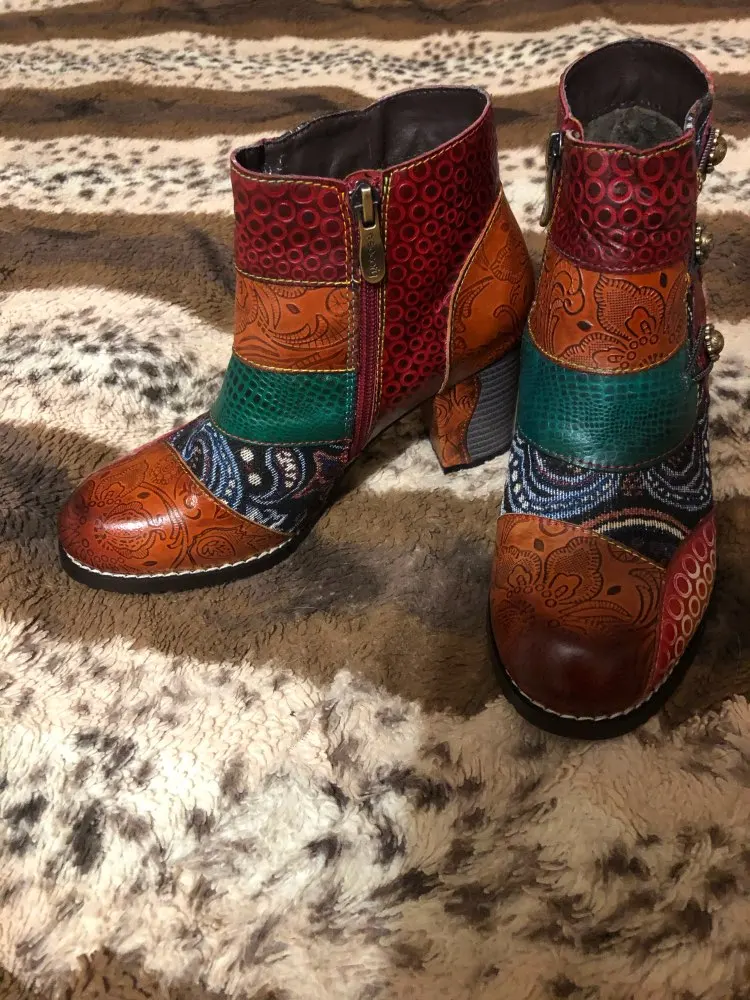 SocofyВинтажные женские ботильоны с принтом; Женская обувь из натуральной кожи в стиле ретро; Женские ботинки на высоком квадратном каблуке; 2020
