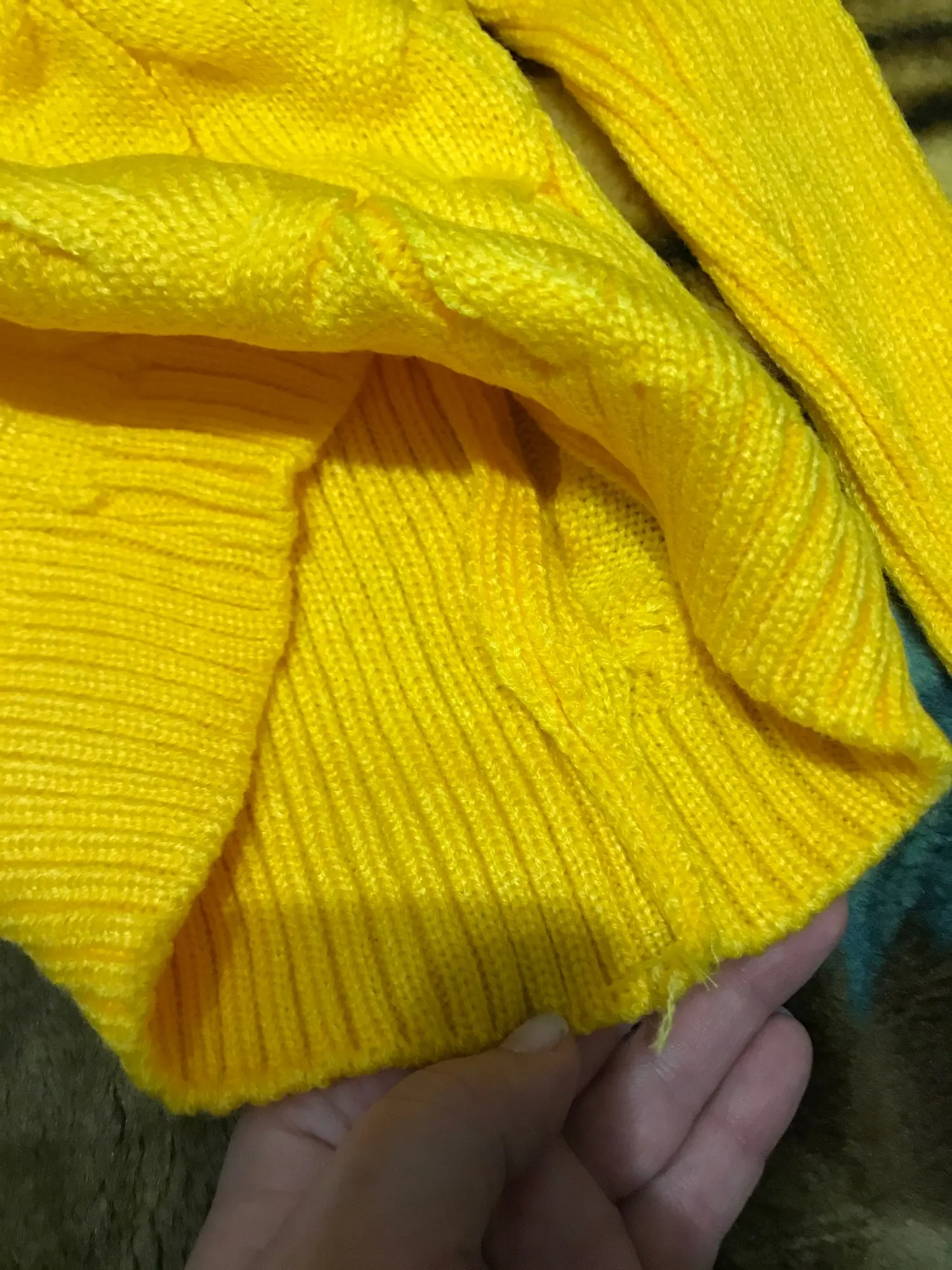 Очень крутой свитер! Цвет яркий, нитки не торчат, очень довольна! и супер быстрая доставка.