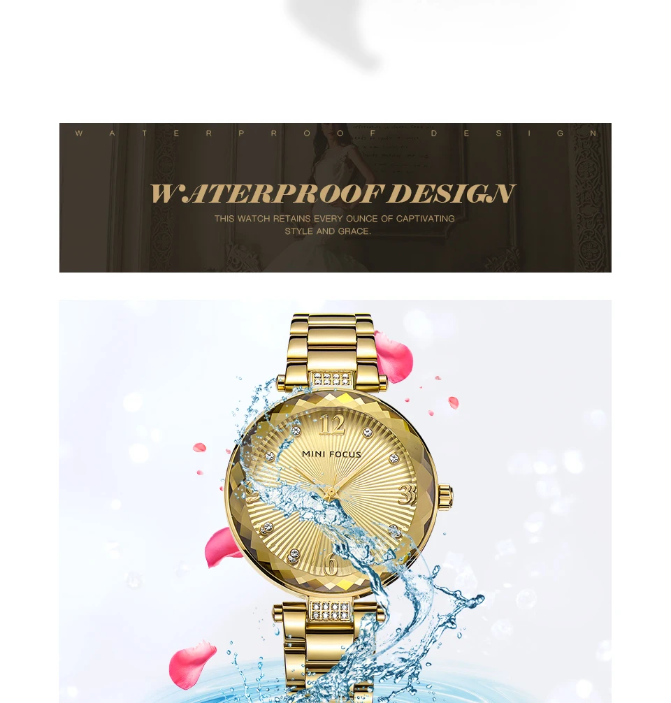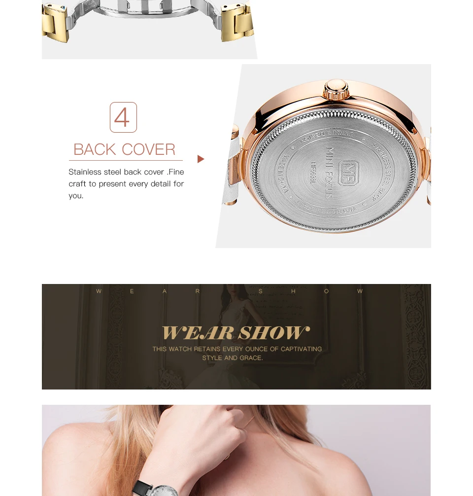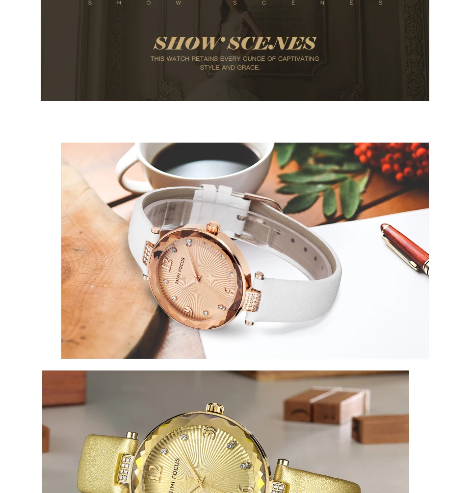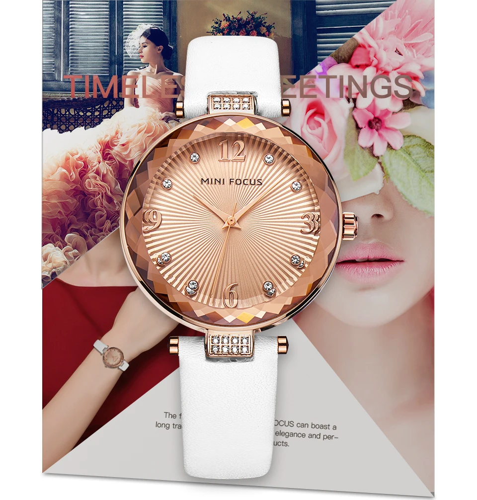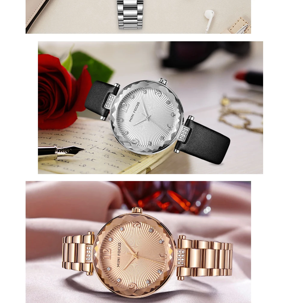 Женские кварцевые часы MINI FOCUS из нержавеющей стали с кожаным ремешком
