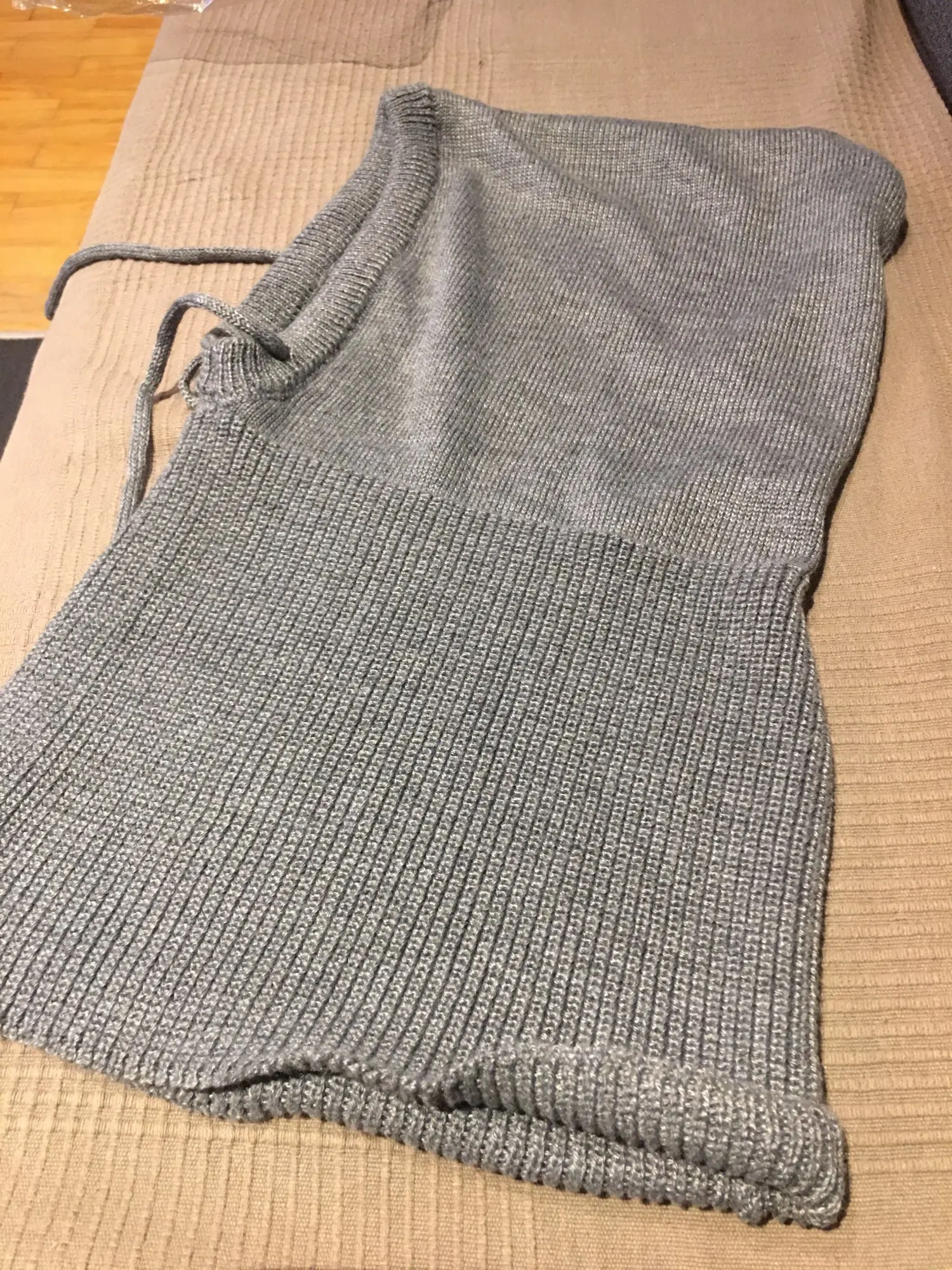 Приятный трикотаж, мне не подошло, отдала мужу, иногда носит, но чаще как капюшон для защиты шеи от ветра. Там очень длинная шея, думаю носить с подгибаются края во внутрь, тем более так теплее. Удобный и приятный, пришло кажется за 2 недели