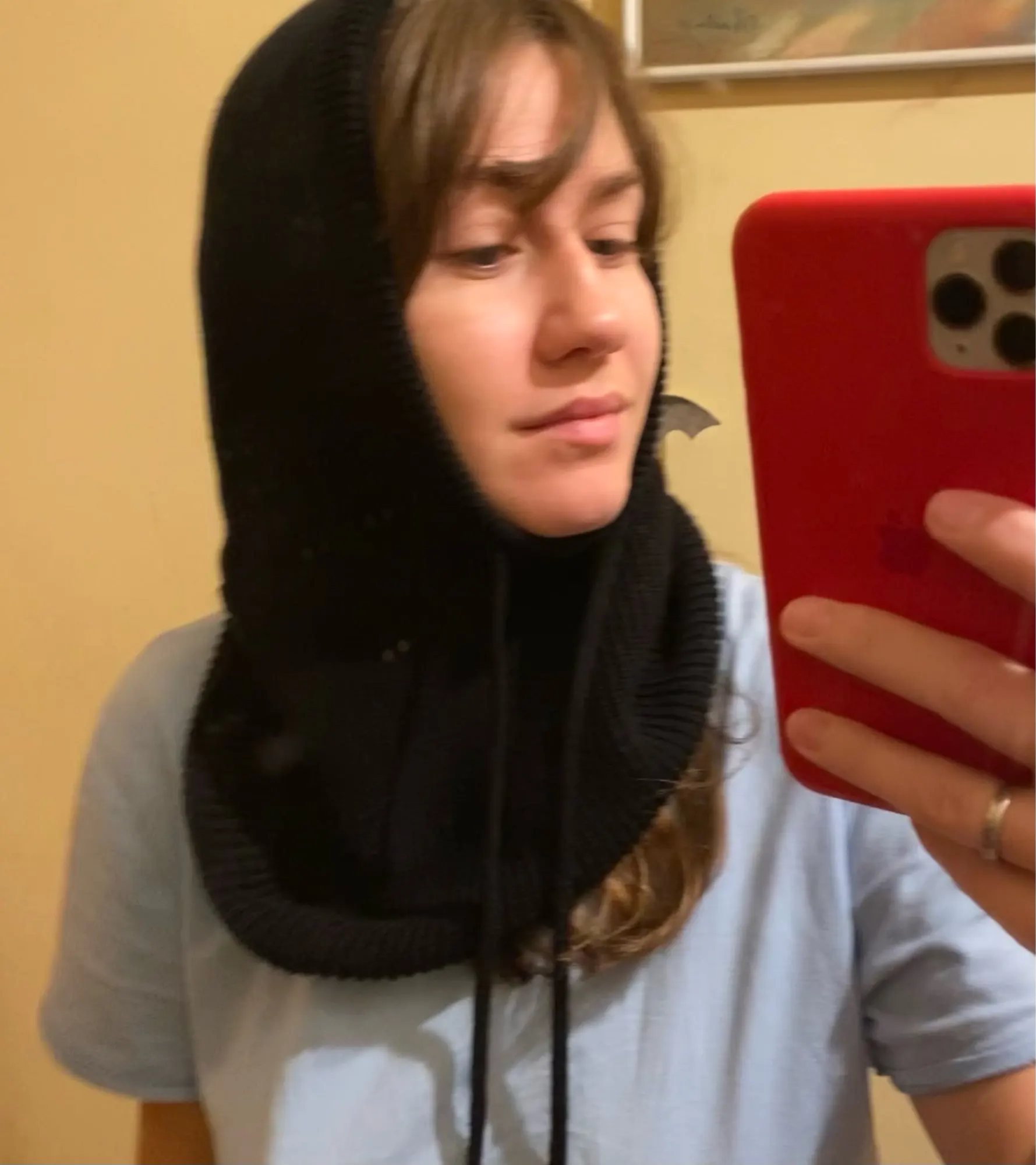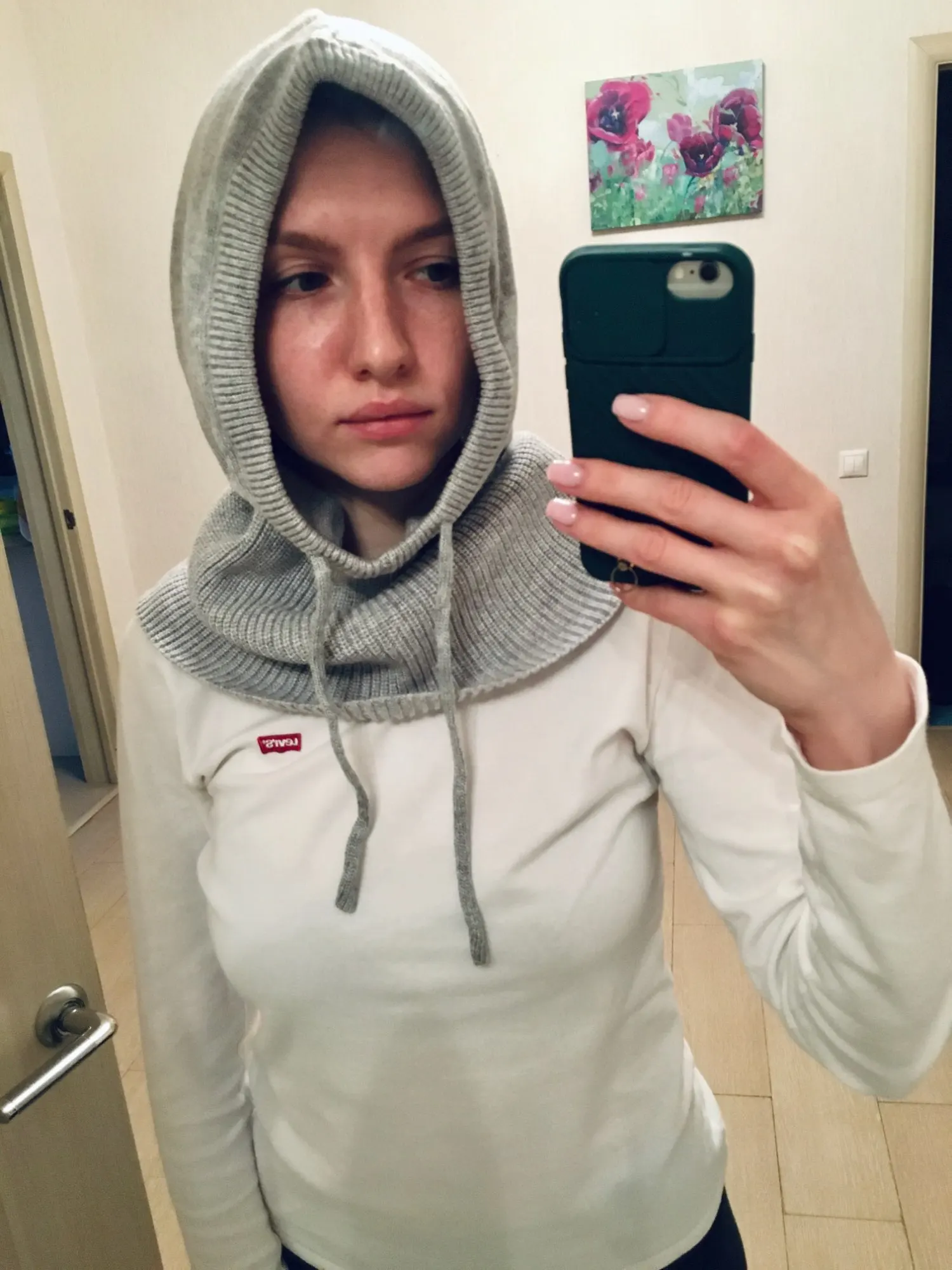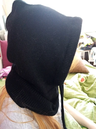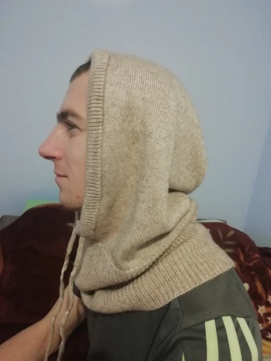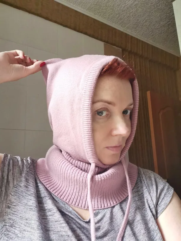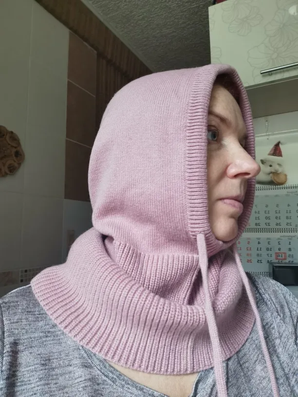 Я скорее недовольна. Капор скорее на подростка или худенькую девушку, мою харю эта дырко-щель обтягивает и я как будто из вагины на свет лезу. Короче, если у вас большая полноразмерная человеческая голова, а тушка размера 48-50, толстые щечки и вес больше 50кг то это однозначно не ваш вариант. А вот подростку очень норм будет однозначно. В целом качество и вязка норм, как альтернатива капюшону или не любителям шапки очень ок