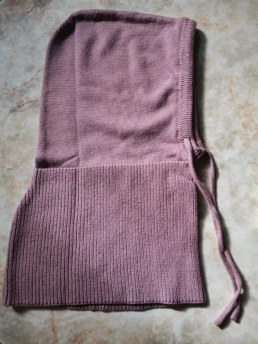 Неплохой капор, мягки, но синтетика. На 0 с ветром было прохладно, но я буду носить два вместе. Темно серый показался чуть светлее э, чем на фото продавца, а розовый чуть более припыленный и с фиолетовым полотном. Есть брак на розовом - дырочки(но мне не принципиально). Серый чуть больше розового.