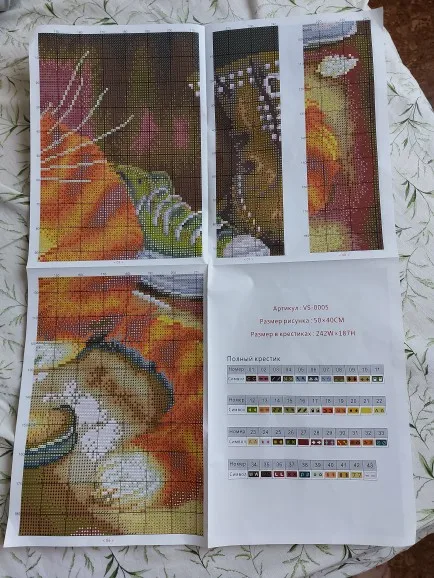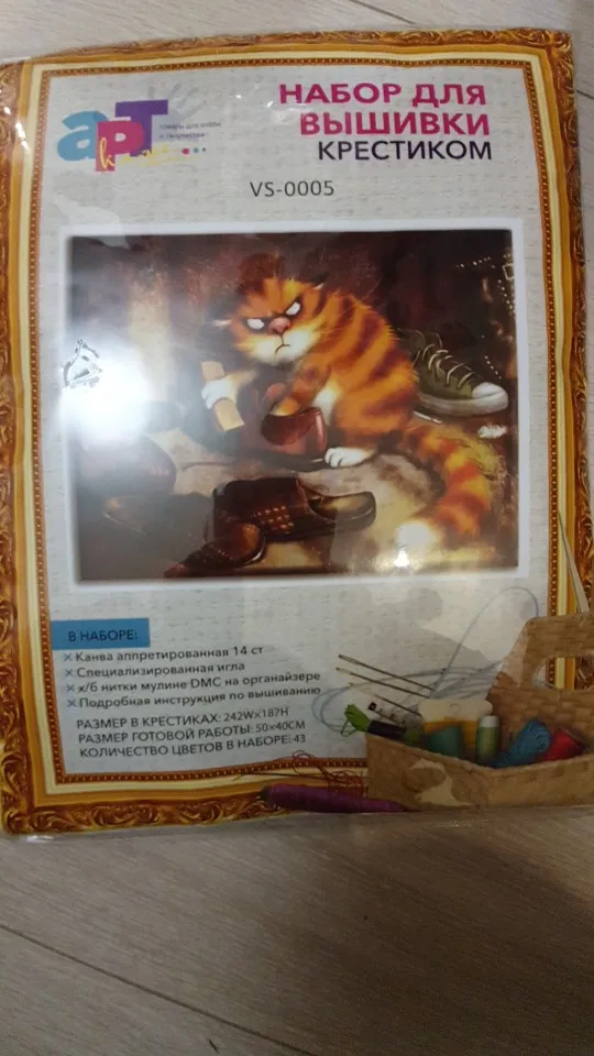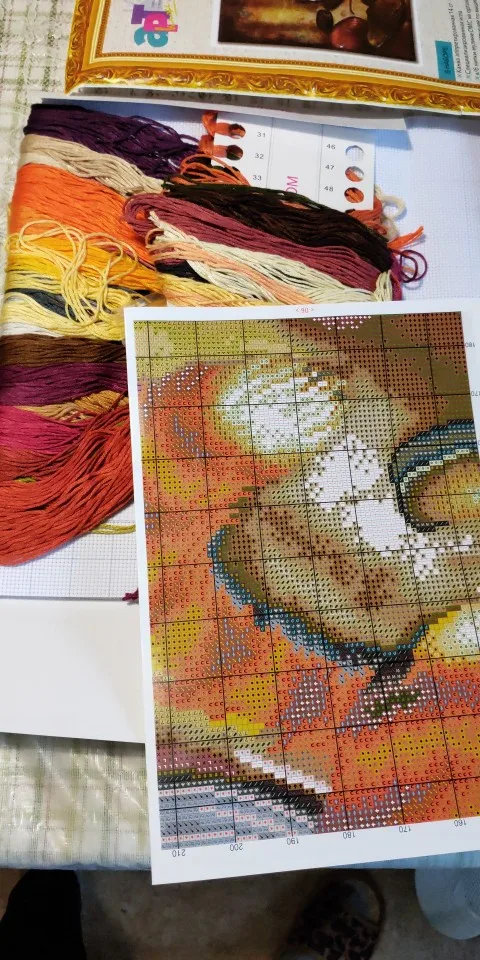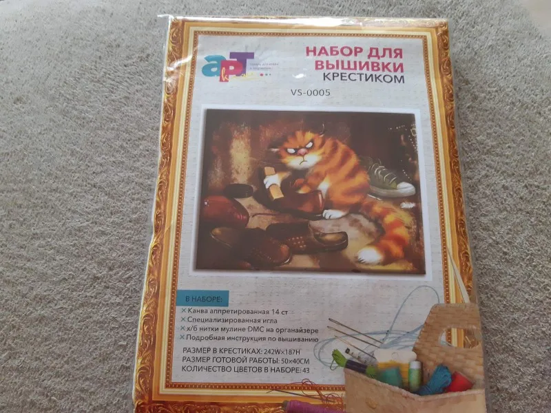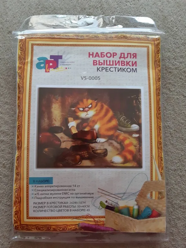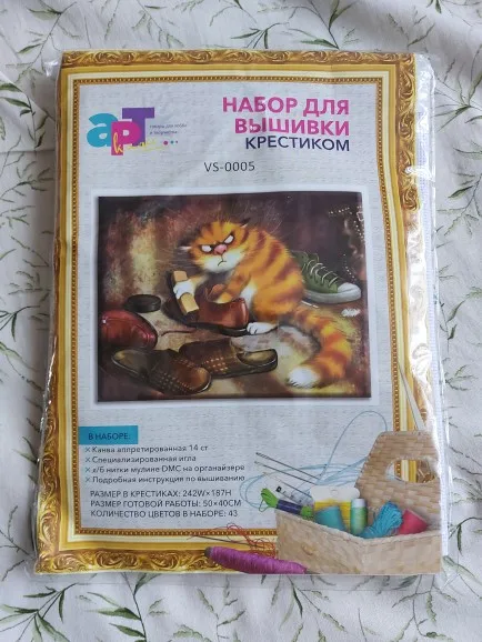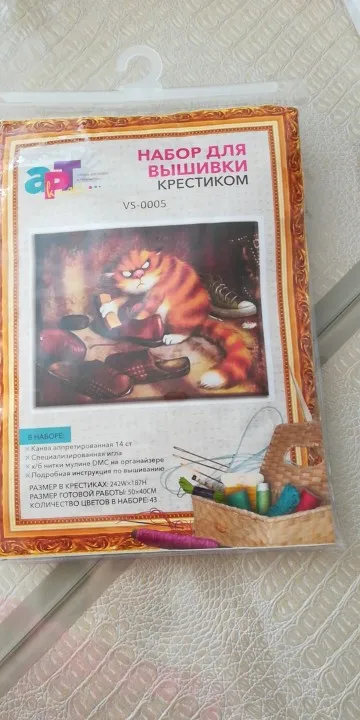 Комплект был хорошо упакован и качество Aida и нитей/нитей удовлетворительное. Кажется, что для завершения проекта много нитей. Проблема только в том, что я получил комплект упаковки и инструкции на русском языке. Я думал, что это будет на английском языке. Это не серьезная проблема, так как я опытный строитель, но это может быть проблемой для новичка, если я планирую это как подарок.