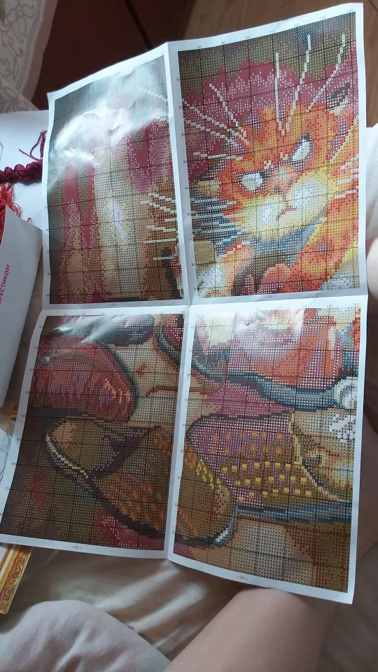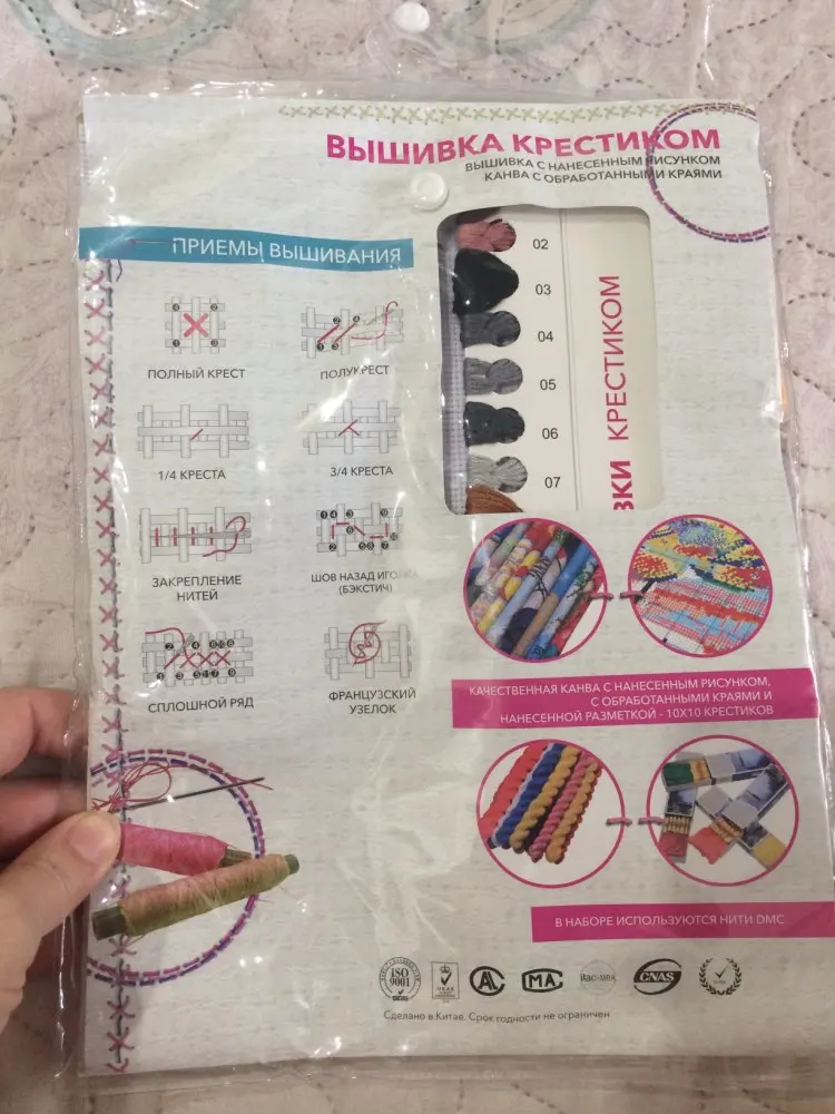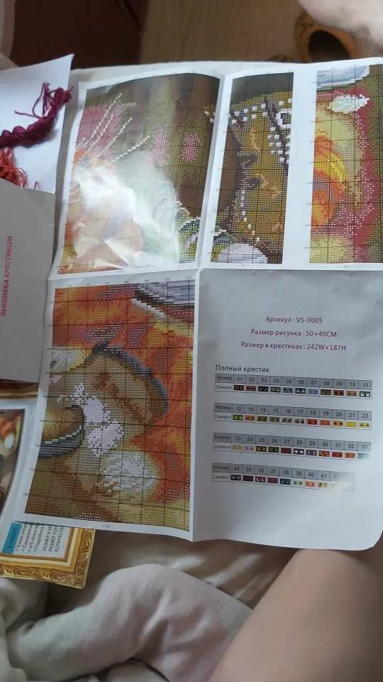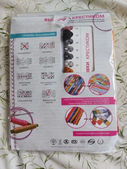 Набор качественный, ниток достаточно. Инструкции и схемы цветные на русском языке. Быстрая доставка. Трек отслеживался. Спасибо продавцу, оперативно отвечает на вопросы.