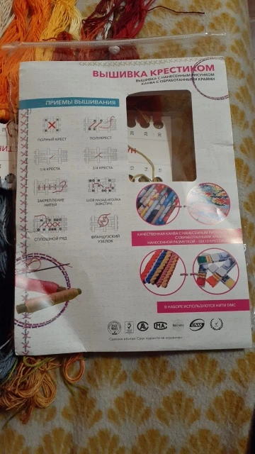 Заказ пришел Очень быстро. Отслеживался. Упакован хорошо. Инструкция, нитки, канва все на месте. Спасибо продавцу