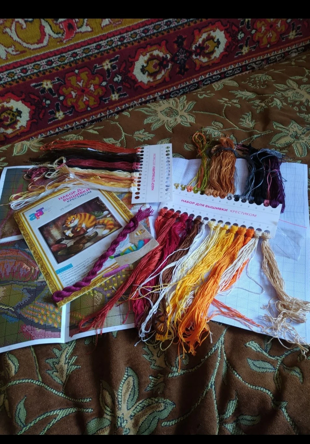 До Читы посылка дошла за месяц. Заказывала канву без рисунка. Канва хорошая, аппретированная(после стирки станет мягче), 14 каунт, не оверложена, но уже расчерчена. Размер канвы 51,5*42см, размер готовой вышивки 242*187крестиков. Весь набор на русском языке. Палитра из 43 цветов, нитки очень яркие, хлопковые с легким блеском. В наборе 1 игла. Вышивается всё в 2 нити полным крестиком. Набор замечательный!!! Продавца рекомендую!!!